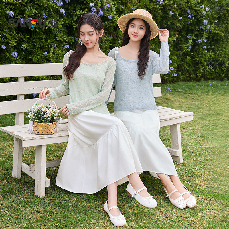 三福连衣裙套装2026新款春季温柔气质罩衫吊带长裙子两件套女装