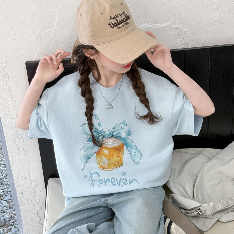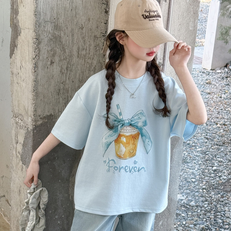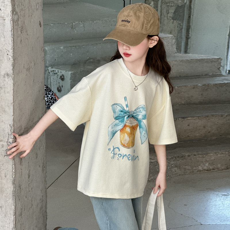 女童夏装纯棉短袖T恤2026新款洋气儿童初中生夏季薄款宽松上衣潮t