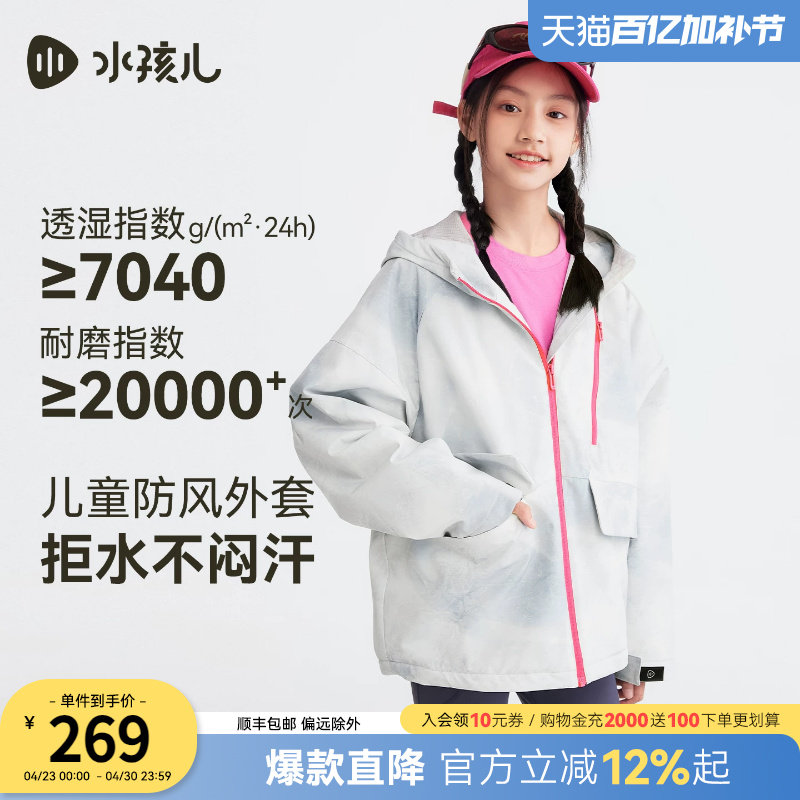 水孩儿童装外套女孩2026春装新款青少年三防加绒厚风衣初中生上衣