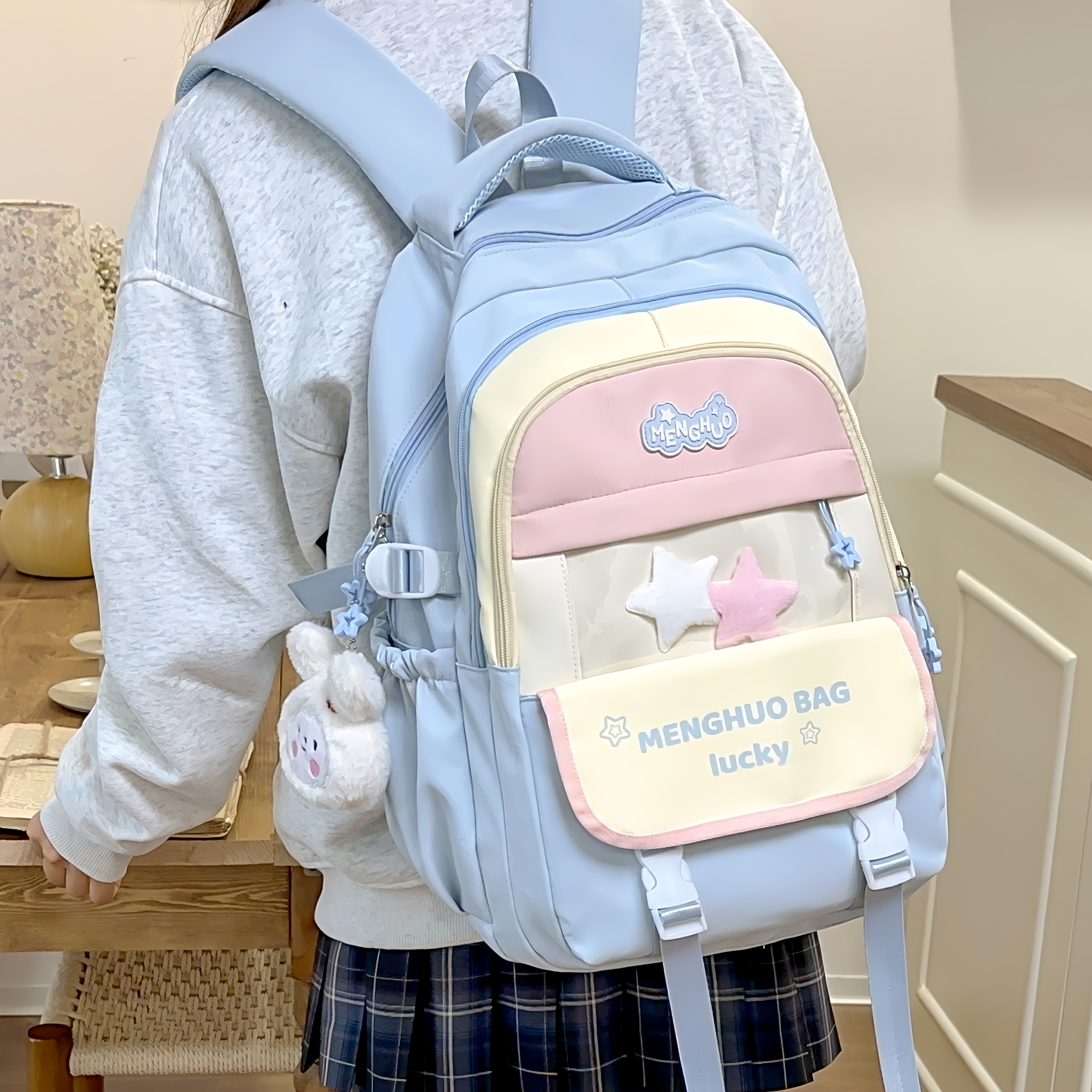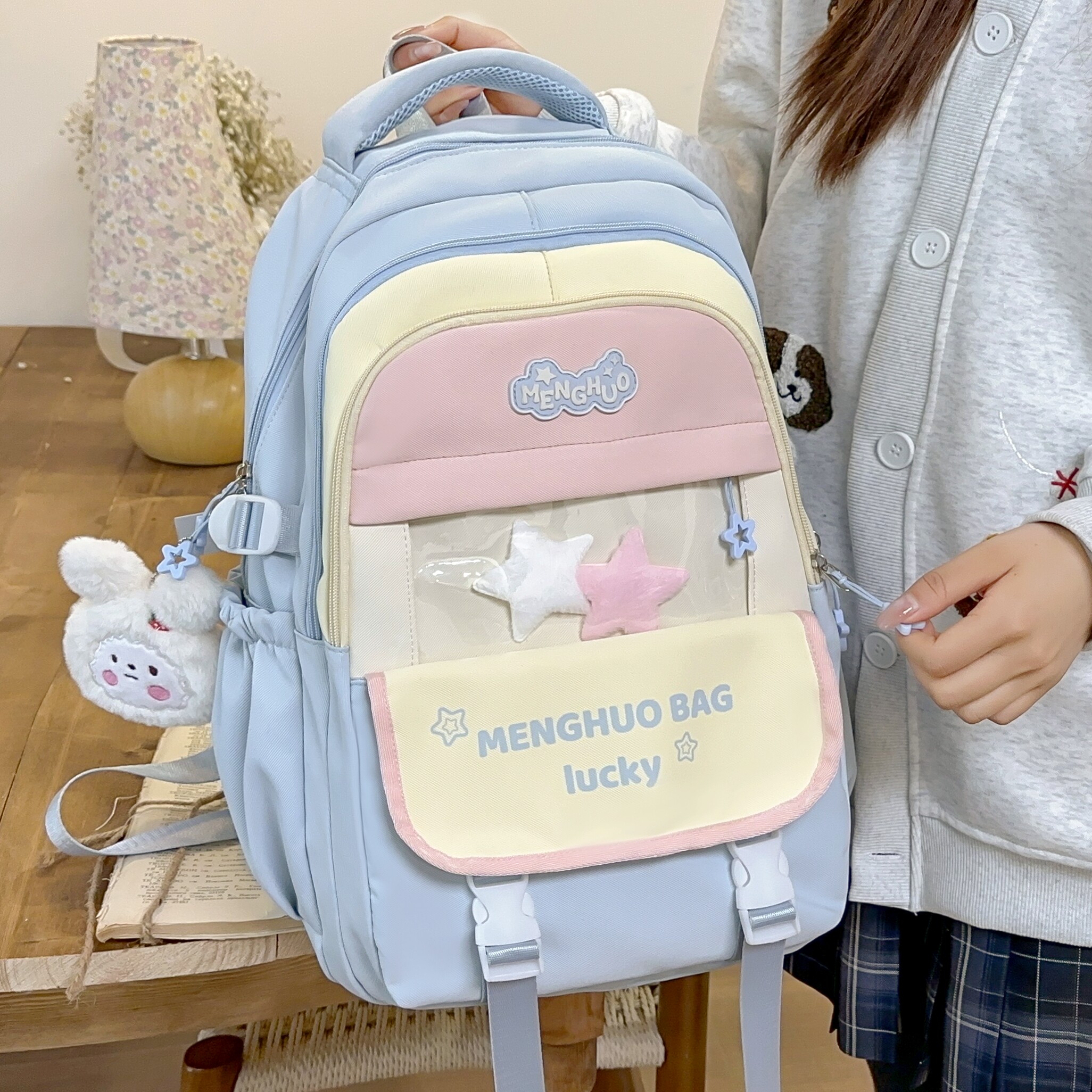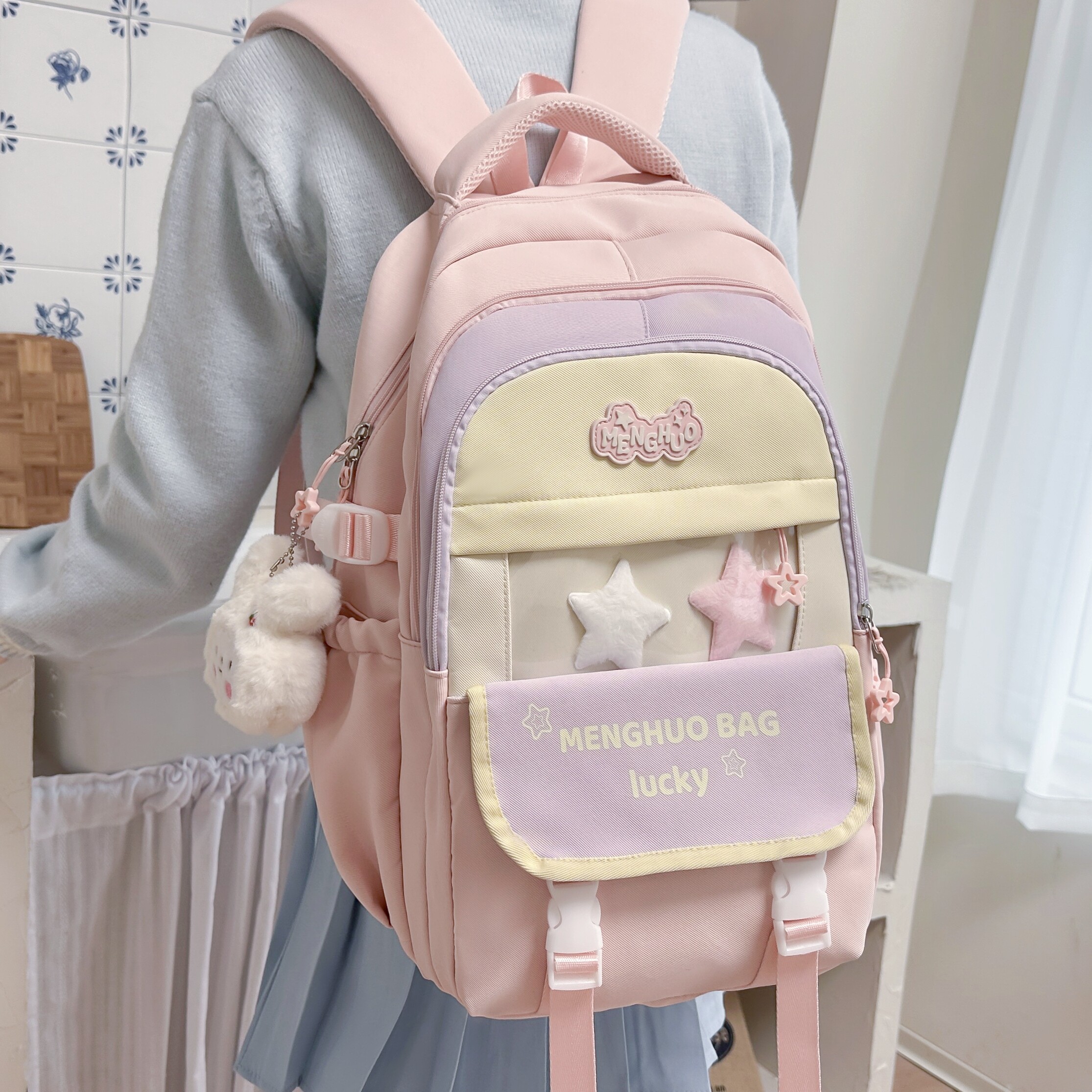 311线报网描述:多隔层日系多巴胺撞色带痛层书包 送运费险