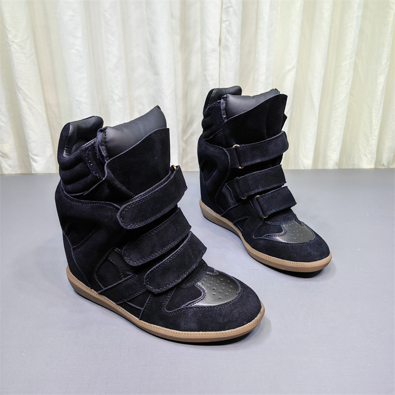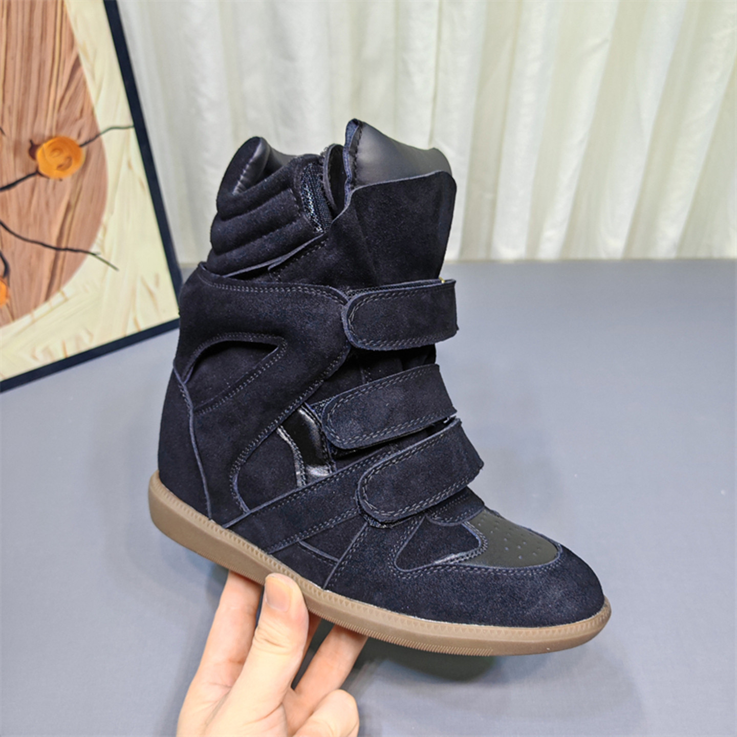 欧美2025新款魔术贴内增高女鞋7CM坡跟高帮运动休闲鞋真皮牛反绒
