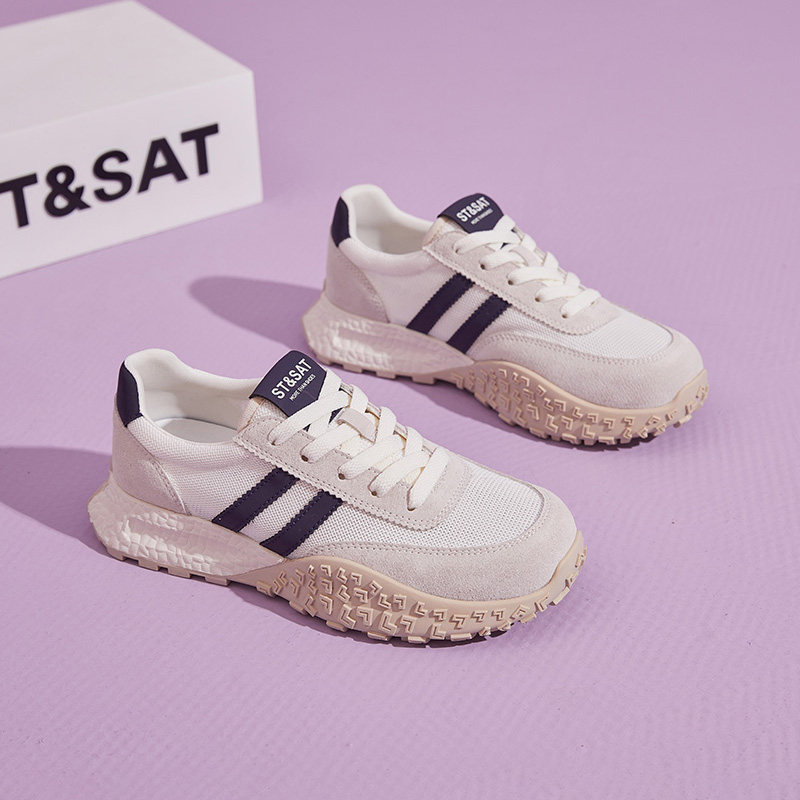 星期六官方正品女鞋春夏新款3.8CM网面透气复古百搭阿甘鞋德训鞋
