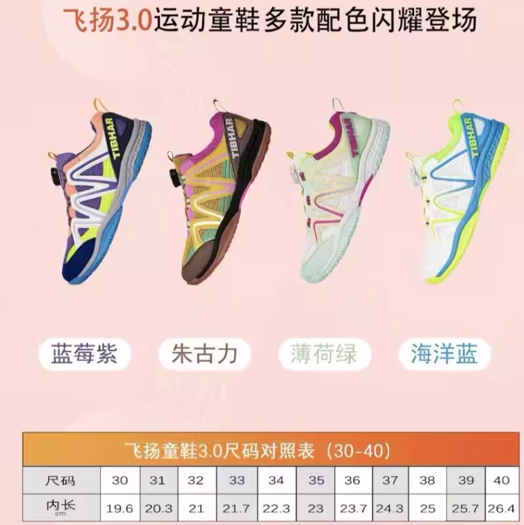 挺拔2026新款乒乓球鞋男女款童鞋飞扬3.0纽扣透气儿童训练球鞋