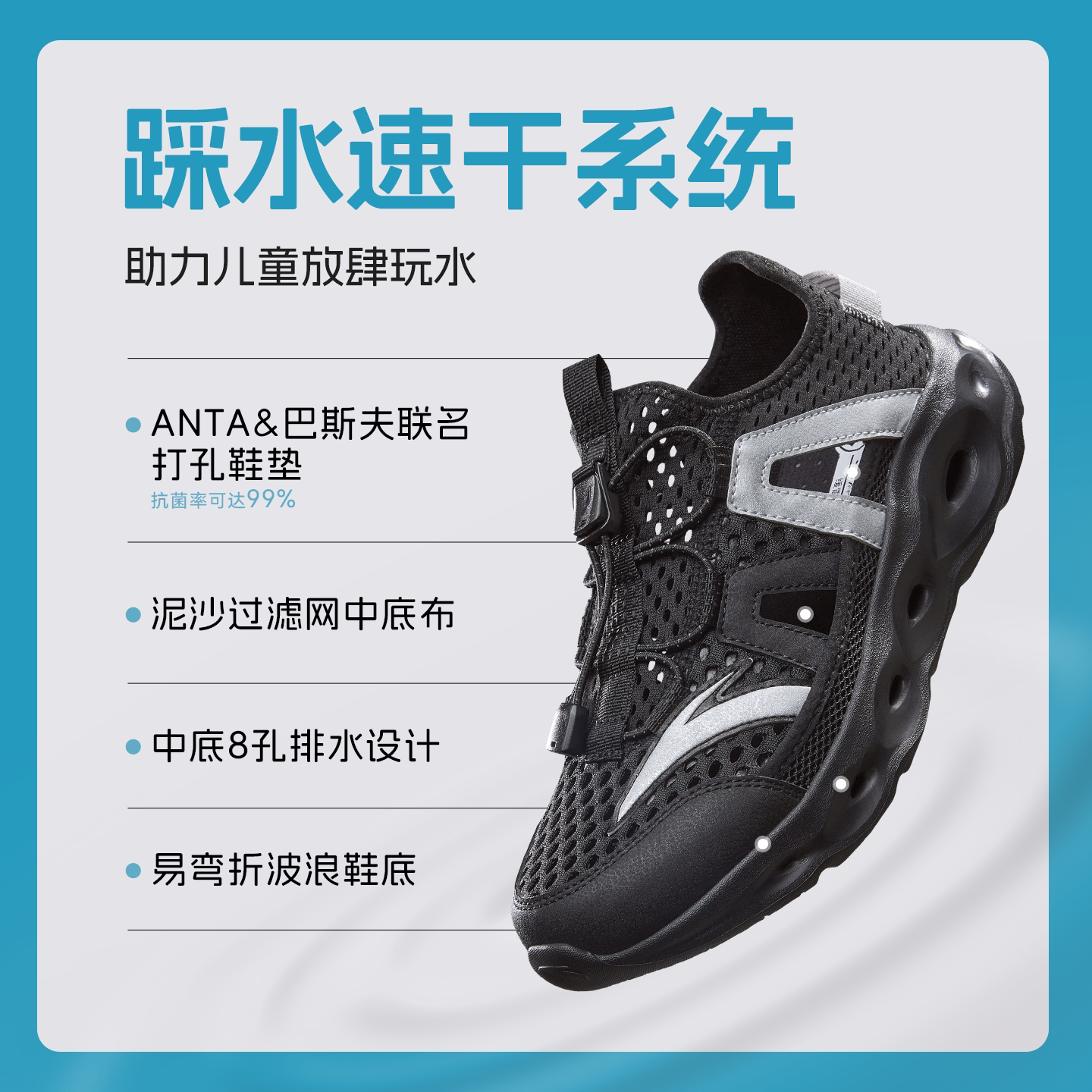 安踏儿童凉鞋男童溯溪鞋沙滩鞋2026夏季新款女童涉水户外运动凉鞋