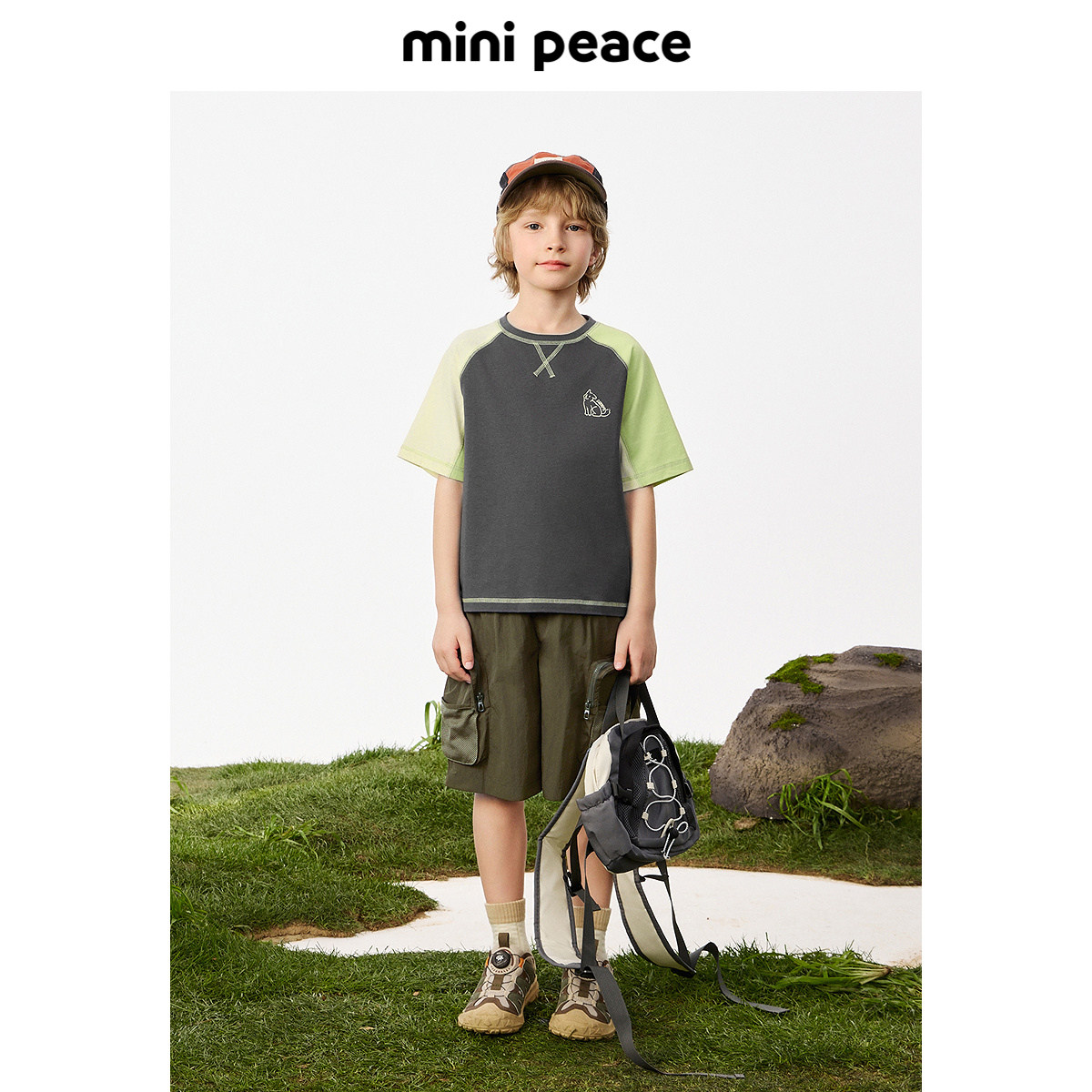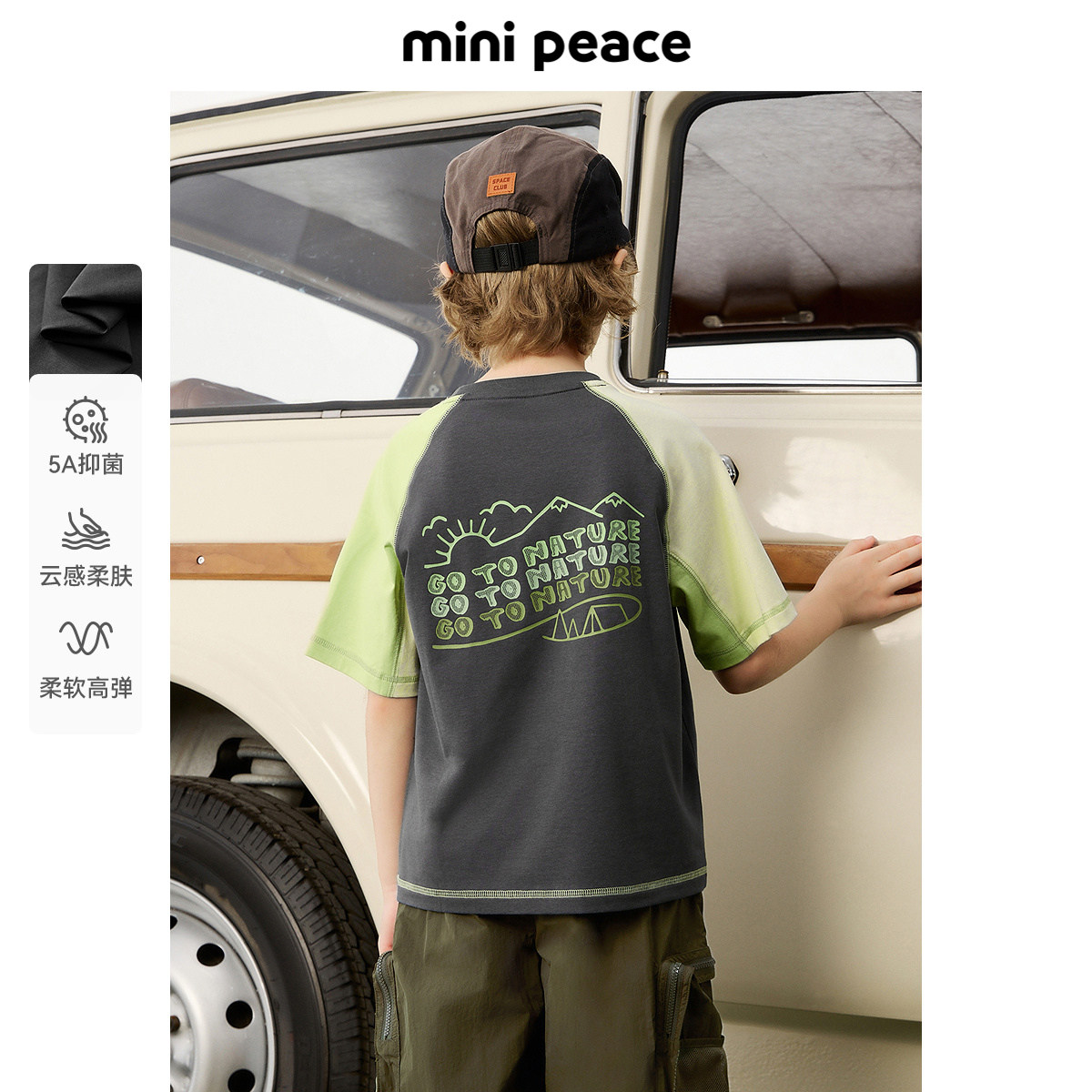 [5A抗菌]MINIPEACE太平鸟童装男童户外短袖T恤儿童插肩袖夏装上衣