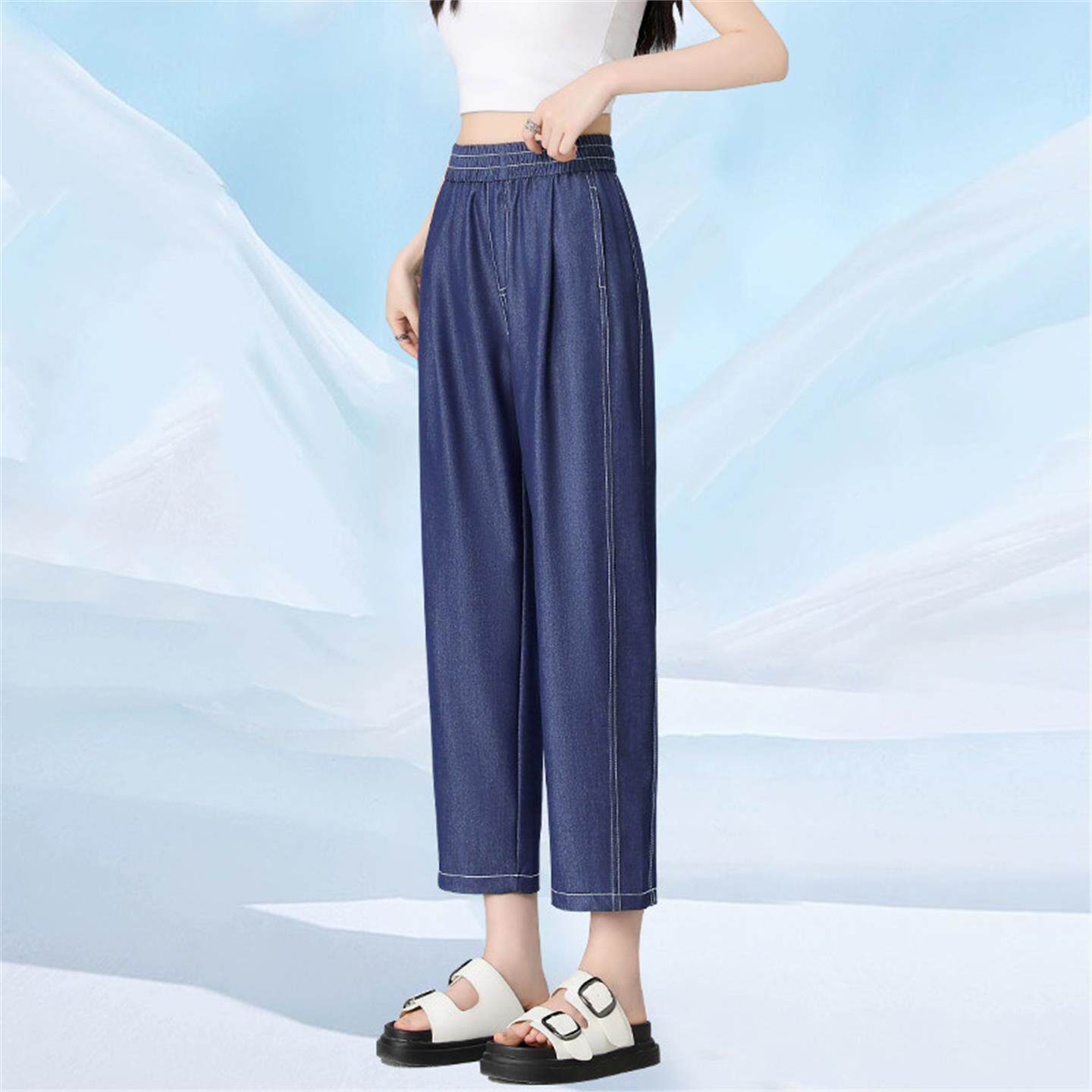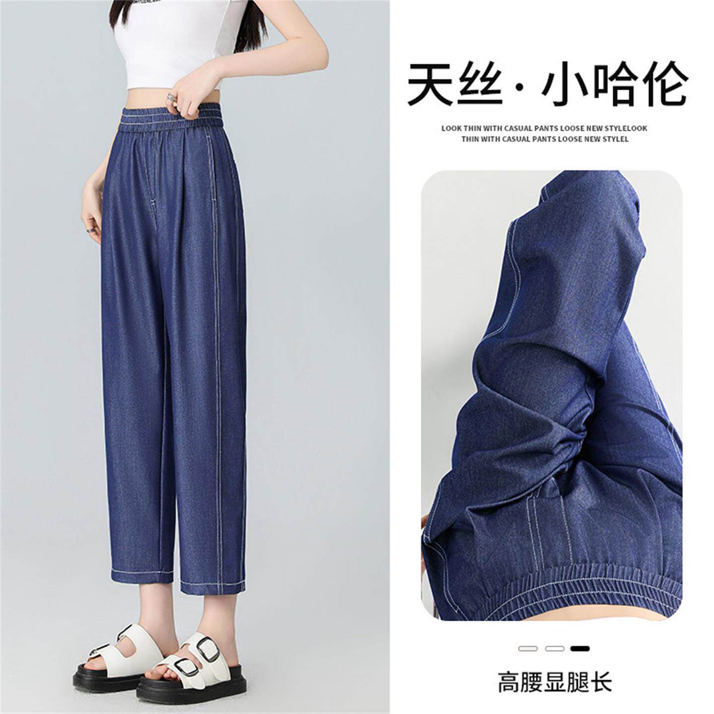 八分天丝牛仔裤女2026新款夏季薄款小个子宽松轻薄哈伦大码七分裤