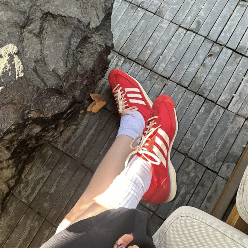 阿迪达斯三叶草红色女鞋春季新款德训鞋复古婚鞋SL72休闲运动鞋