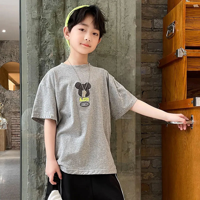 夏季短袖帅气潮牌T恤上衣2026年中大童纯棉儿童薄款新款男童体恤