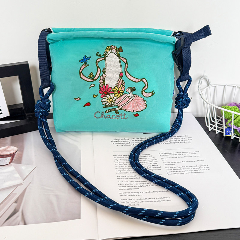 日韩刺绣拉链收纳袋防水尼龙手提单肩斜挎包女大容量轻便环保百搭