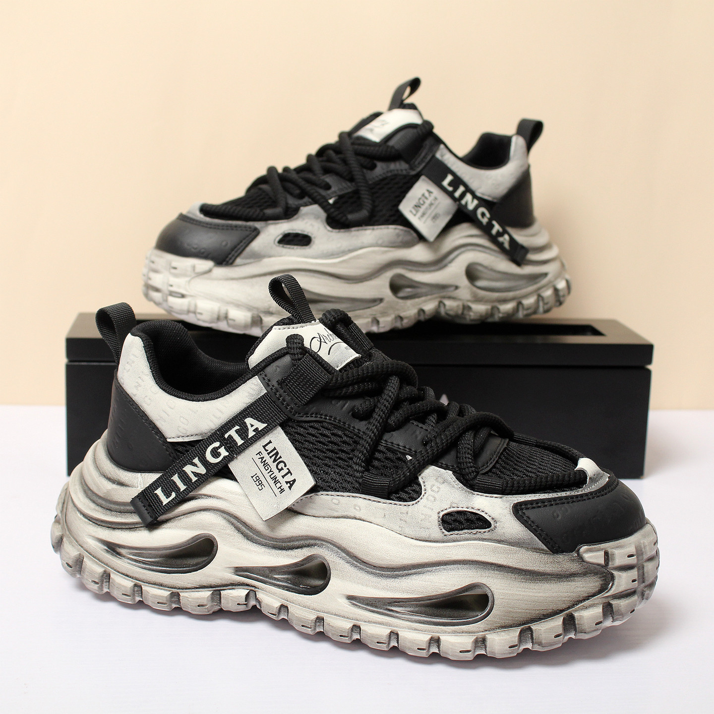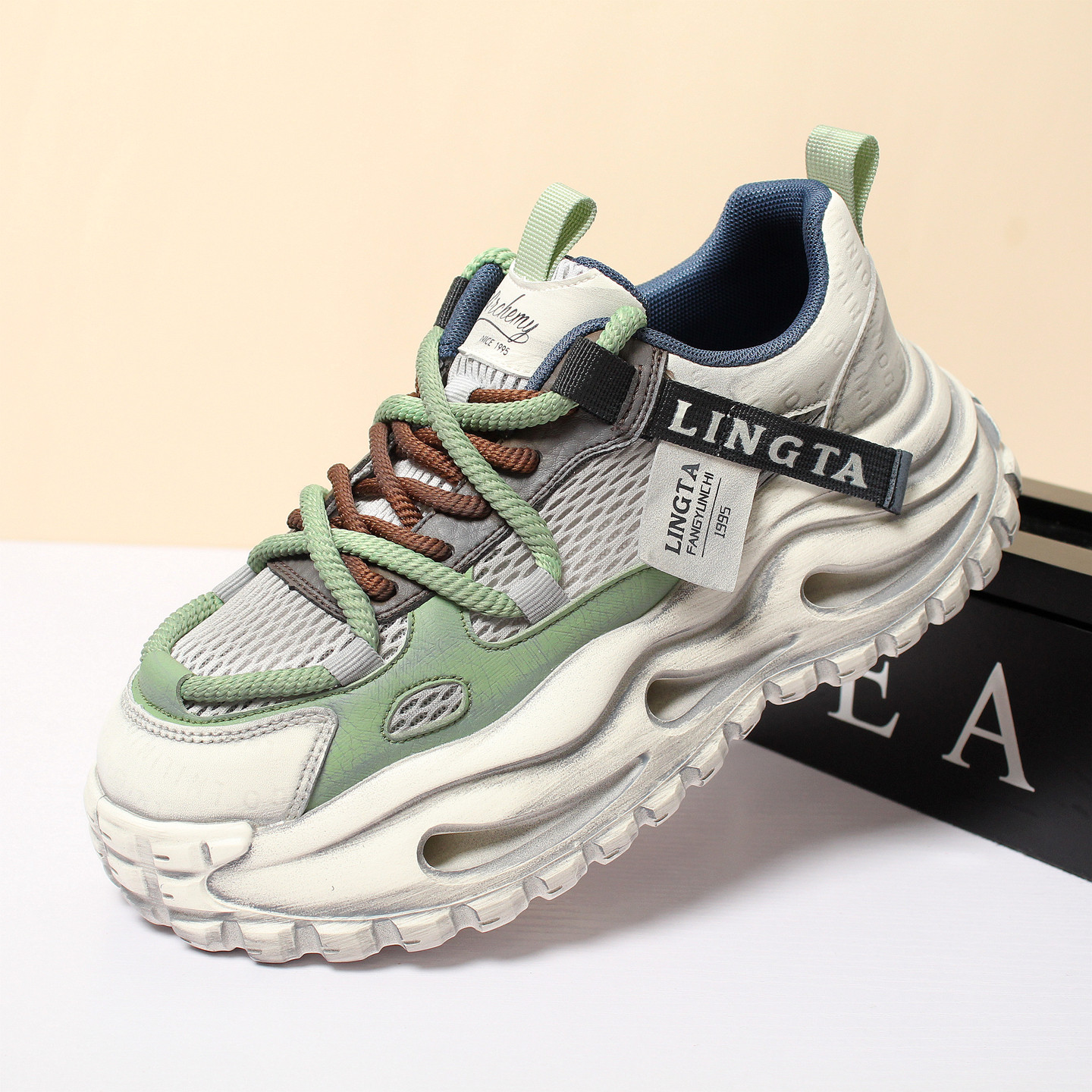 复古运动风老爹鞋男2026春夏新款网面透气运动休闲鞋厚底轻便潮鞋
