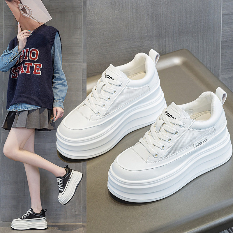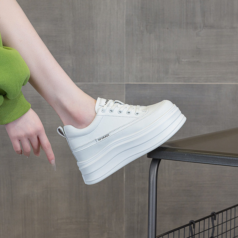 8cm内增高女鞋厚底松糕鞋小个子春夏真皮透气百搭休闲运动小白鞋