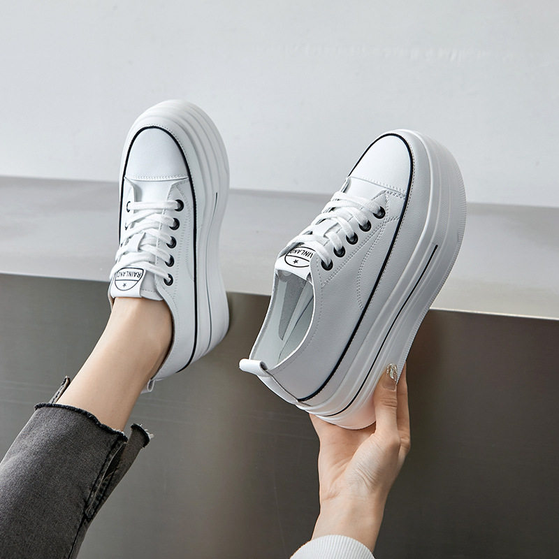 8cm厚底内增高小白鞋女2026春夏季新款真皮松糕轻便休闲板鞋显瘦