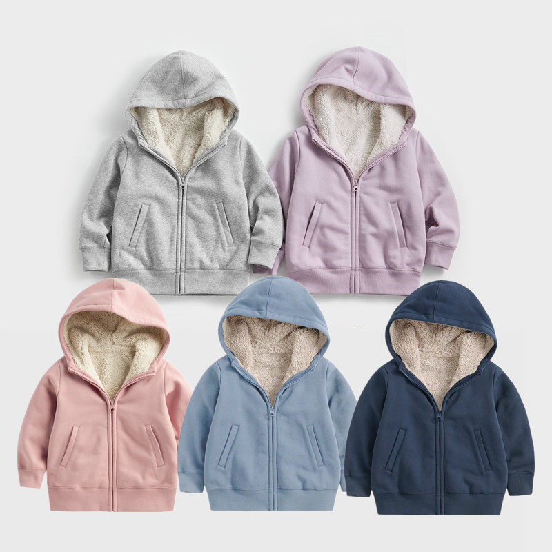 24新款男孩加绒厚外套女童秋冬羊羔绒儿童连帽拉链卫衣中大童衣服