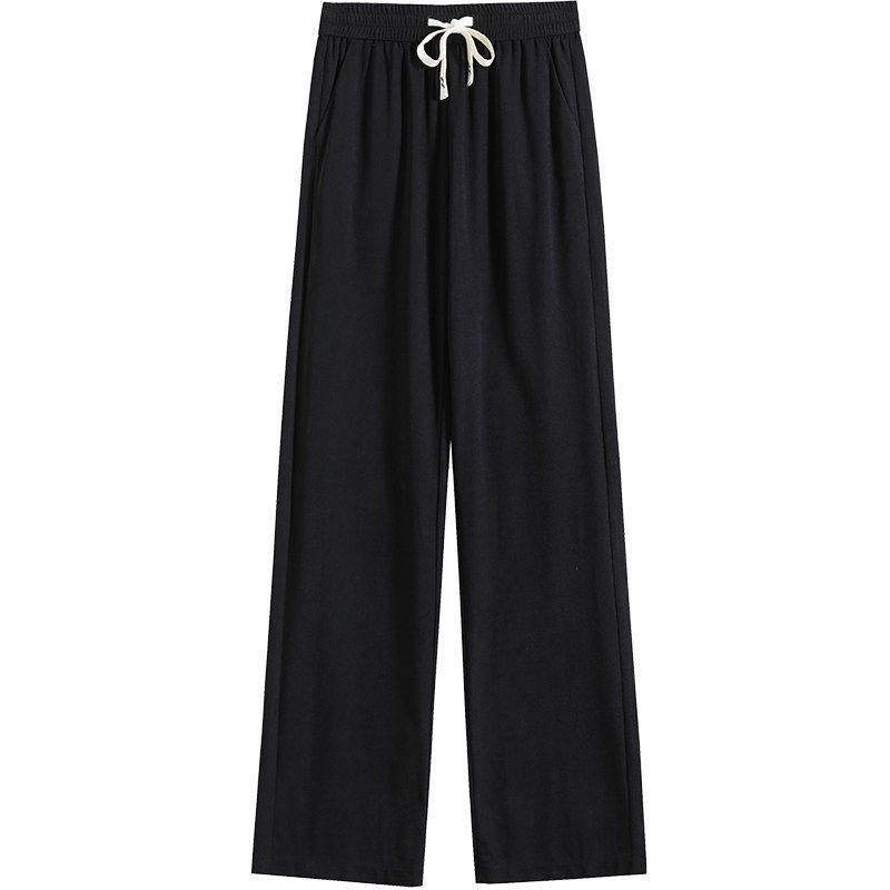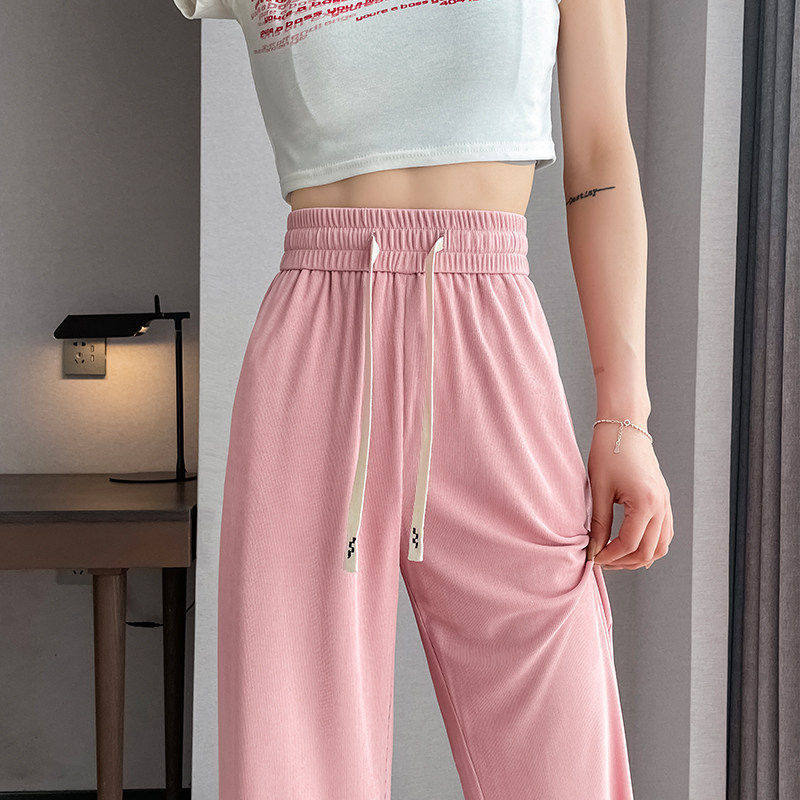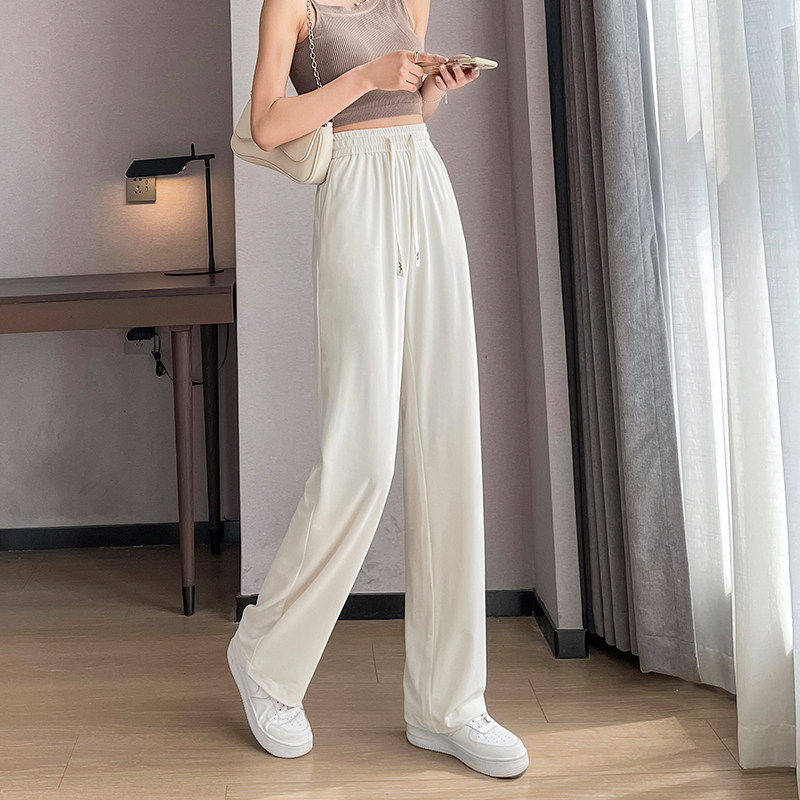 白色阔腿裤女春秋窄版小个子夏季薄款套装冰丝运动松紧腰直筒裤子