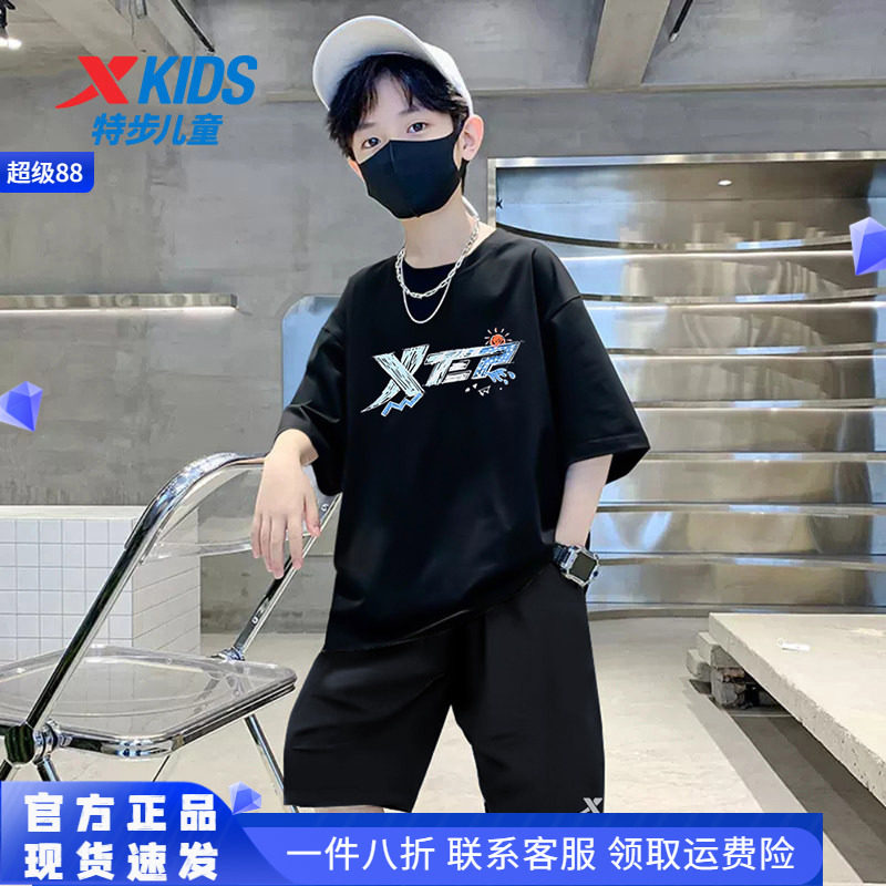 特步儿童速干套装2026夏季新款男童短袖t恤短裤夏装大童运动童装
