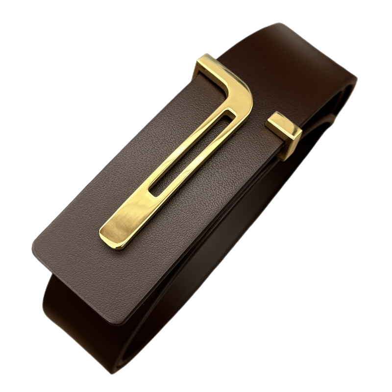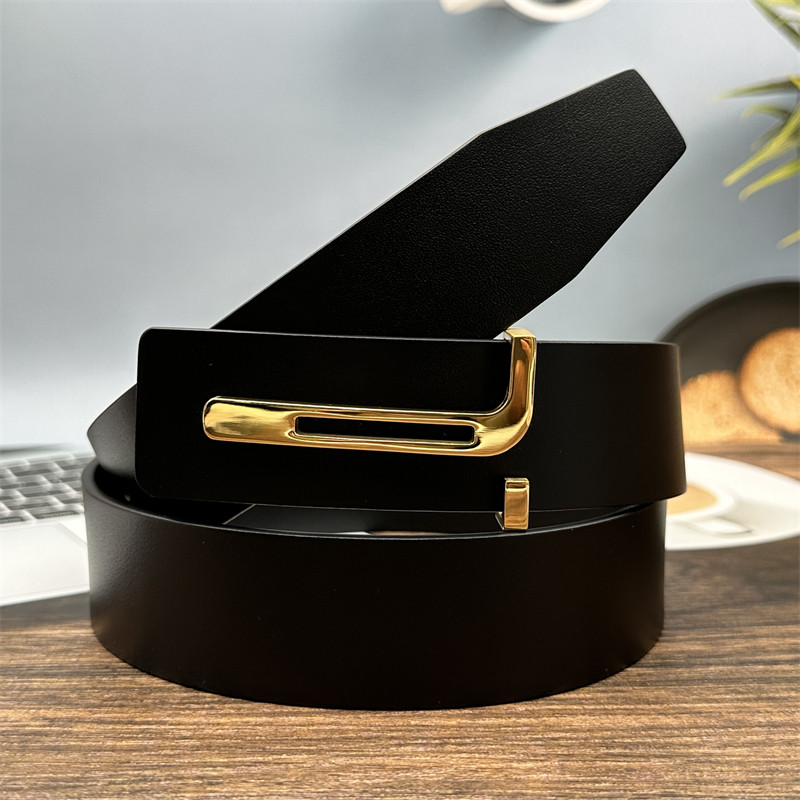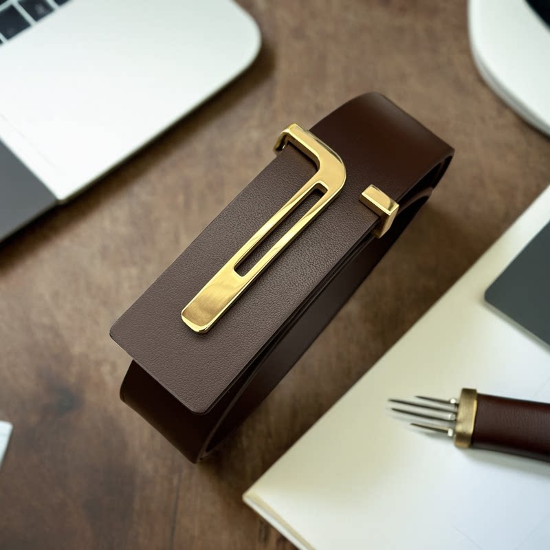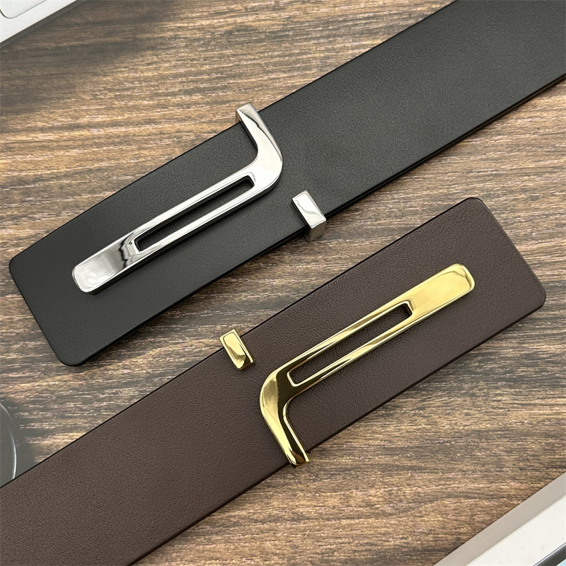 新款男士皮带不锈钢T字扣眼真皮腰带头层牛皮商务休闲百搭裤带