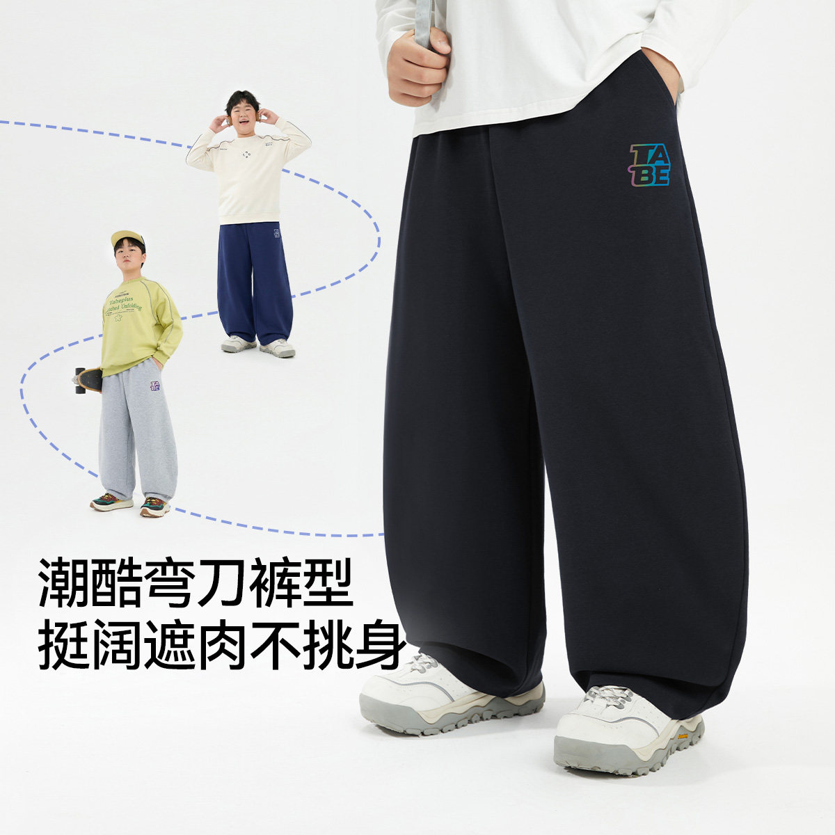 小猪托尼胖男童裤子弯刀裤夏季薄长裤防蚊裤大码童装青少年运动裤