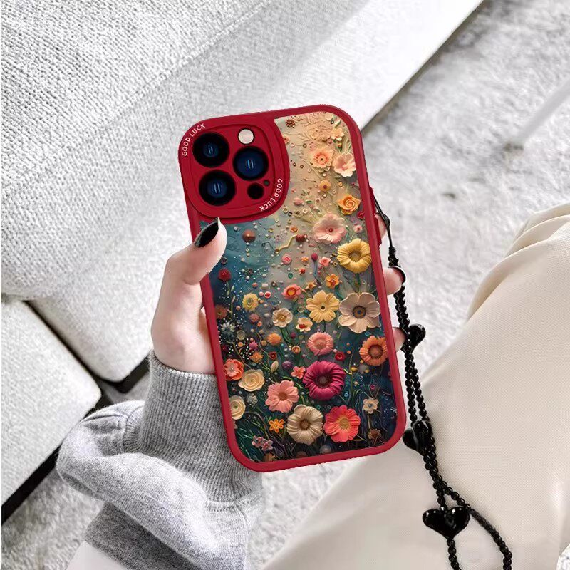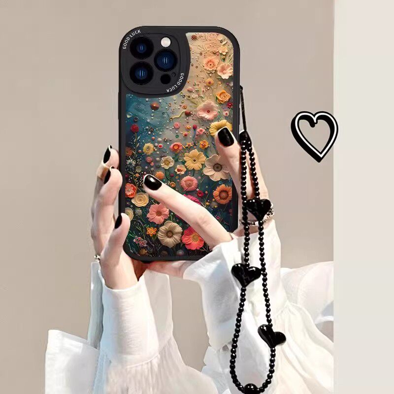 羊皮油画花朵适用荣耀400Pro/300/200手机壳90GT女2026马年新款x70腕带支架x60GT/50防摔magic8畅玩60保护套