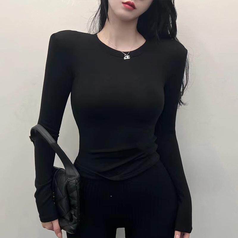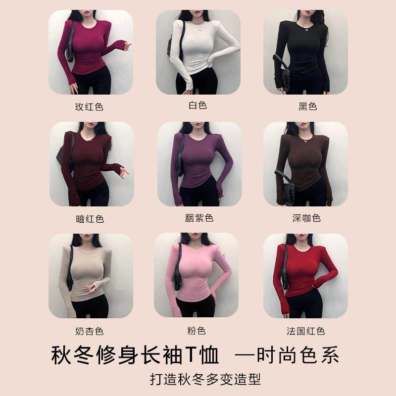 圆领加绒内搭打底衫女高级感可外穿性感紧身长袖加厚保暖上衣高端