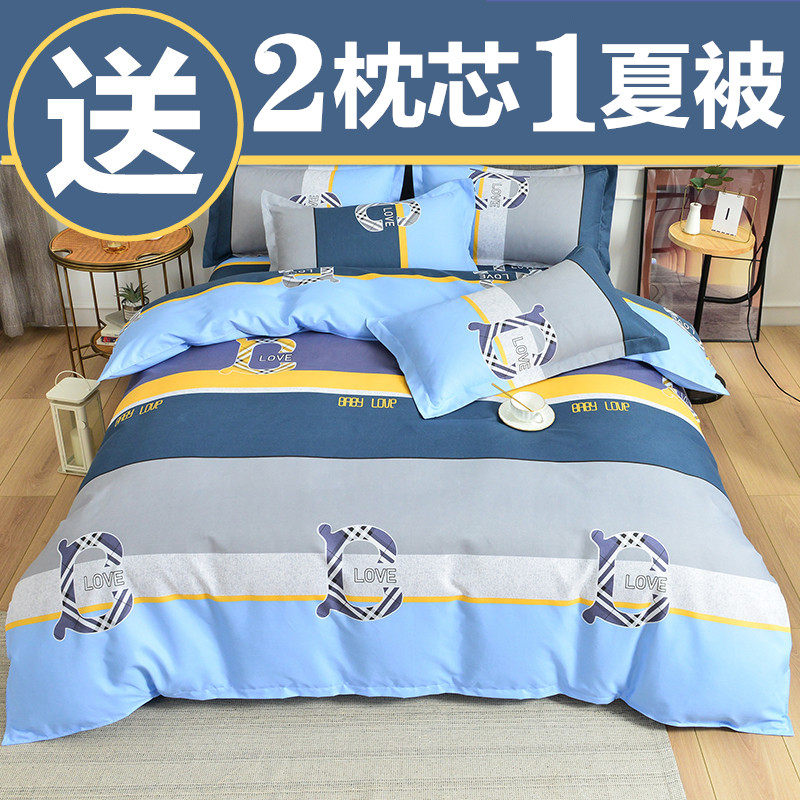 春夏全棉四件套纯棉被套床单双人被罩男生床上用品学生宿舍三件套