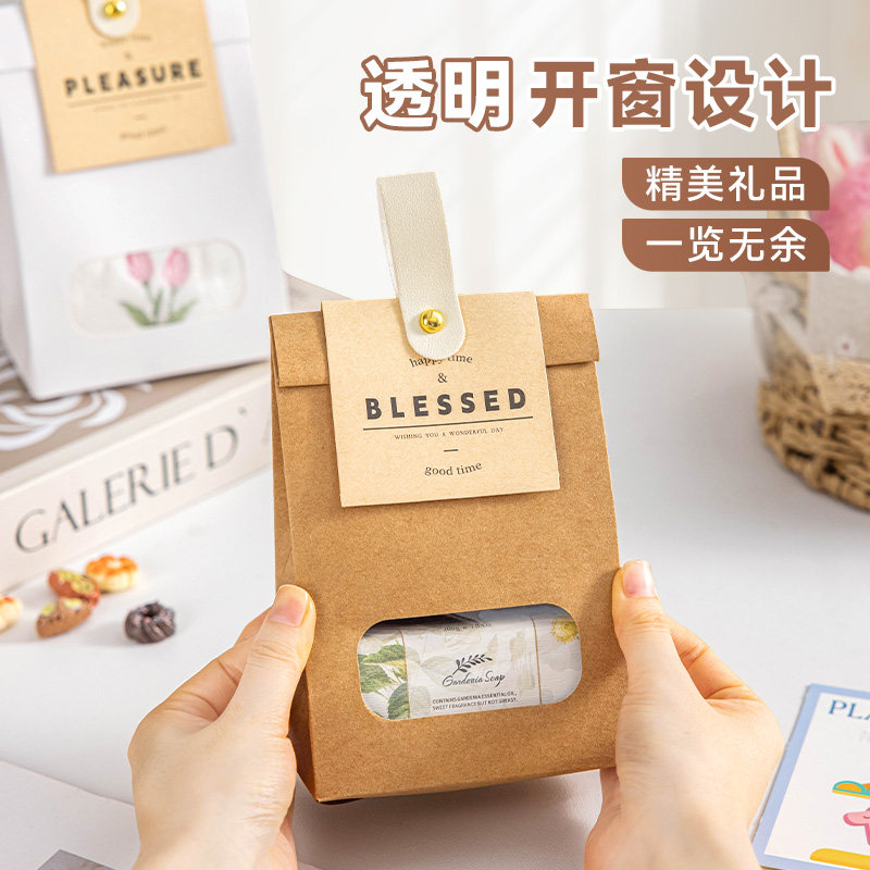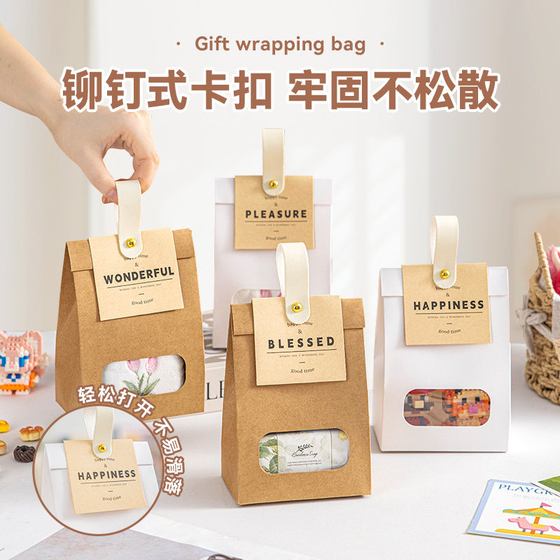 311线报网描述:精选牛皮材质铆钉卡扣透明开窗手提