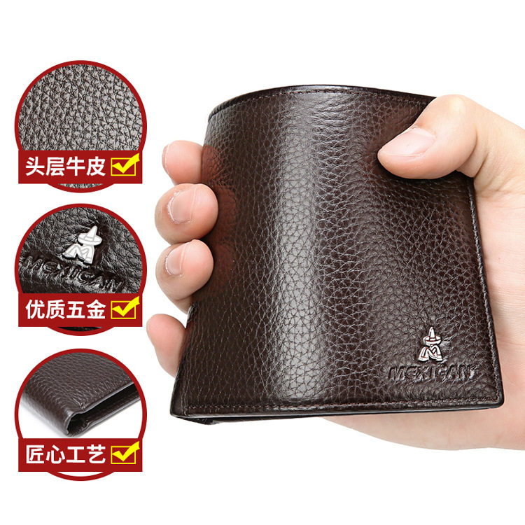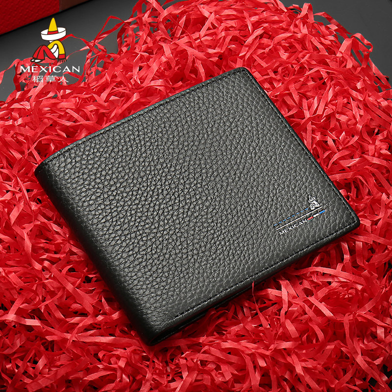 稻草人钱包男真皮短款头层牛皮钱夹男士皮夹卡包生日礼物正品清仓