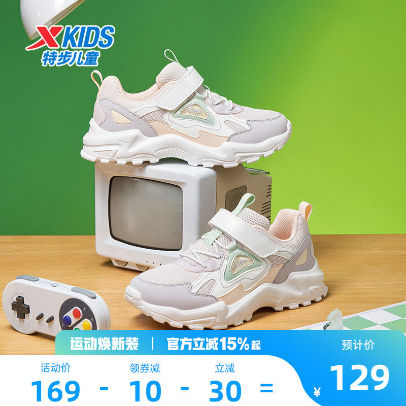 特步女童鞋2026春季新款儿童运动鞋中大童革面保暖魔术贴跑步鞋子