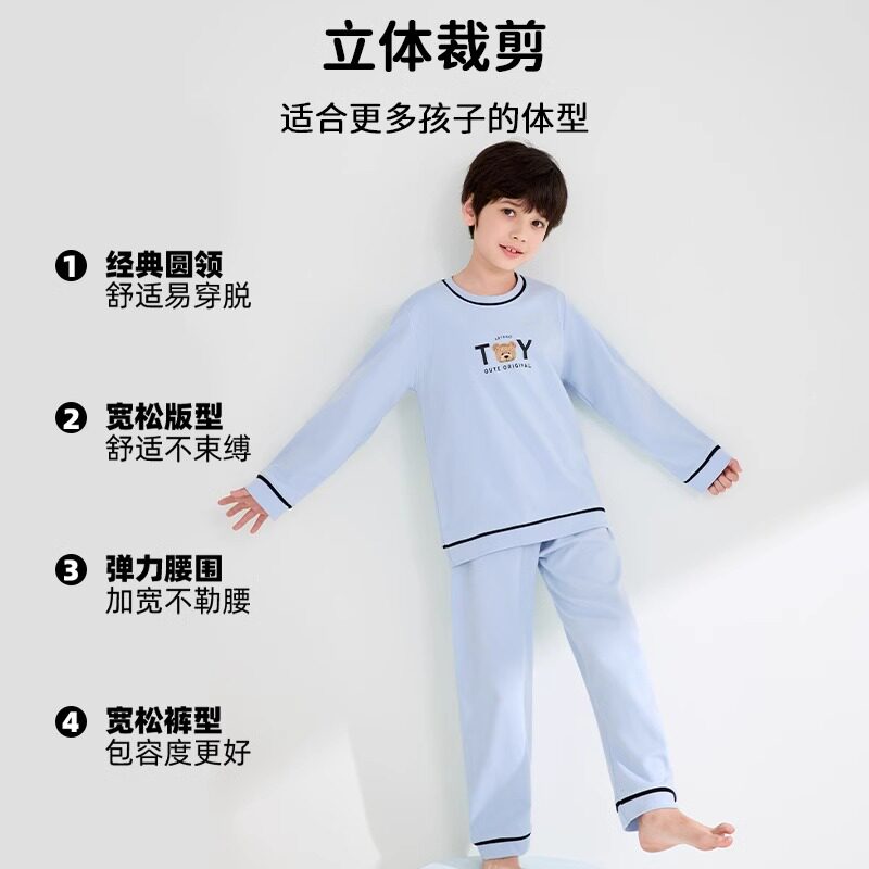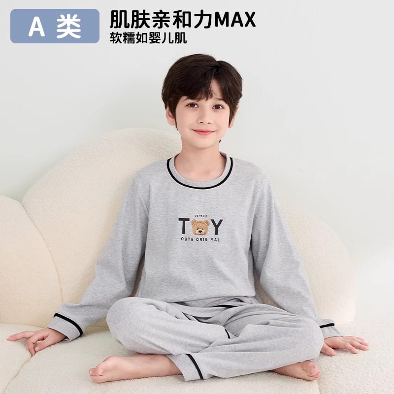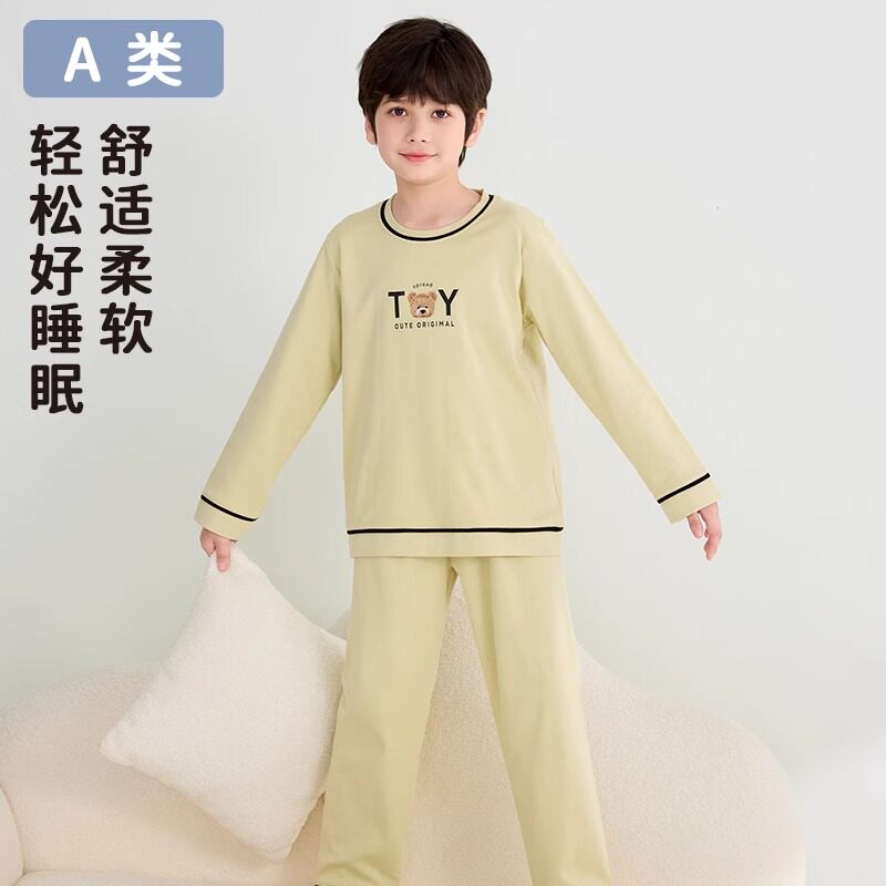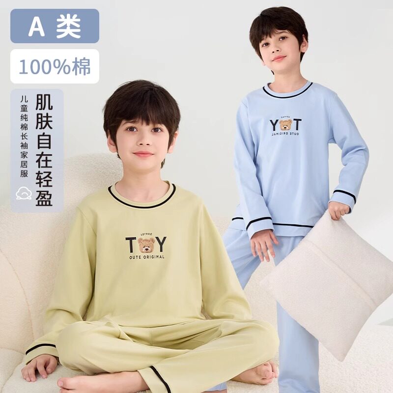 儿童睡衣纯棉a类男童春秋长袖家居服套装中大童男孩青少年夏薄款