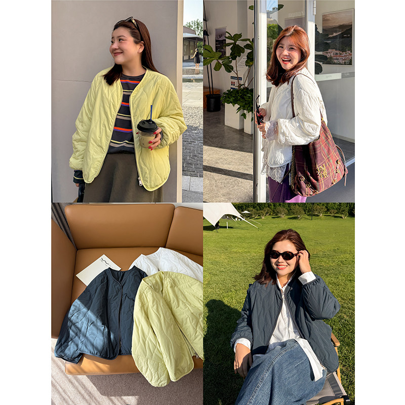 胖mm早冬龟背廓形绗缝棉服木子理想大码女装舒适无领棉外套200斤