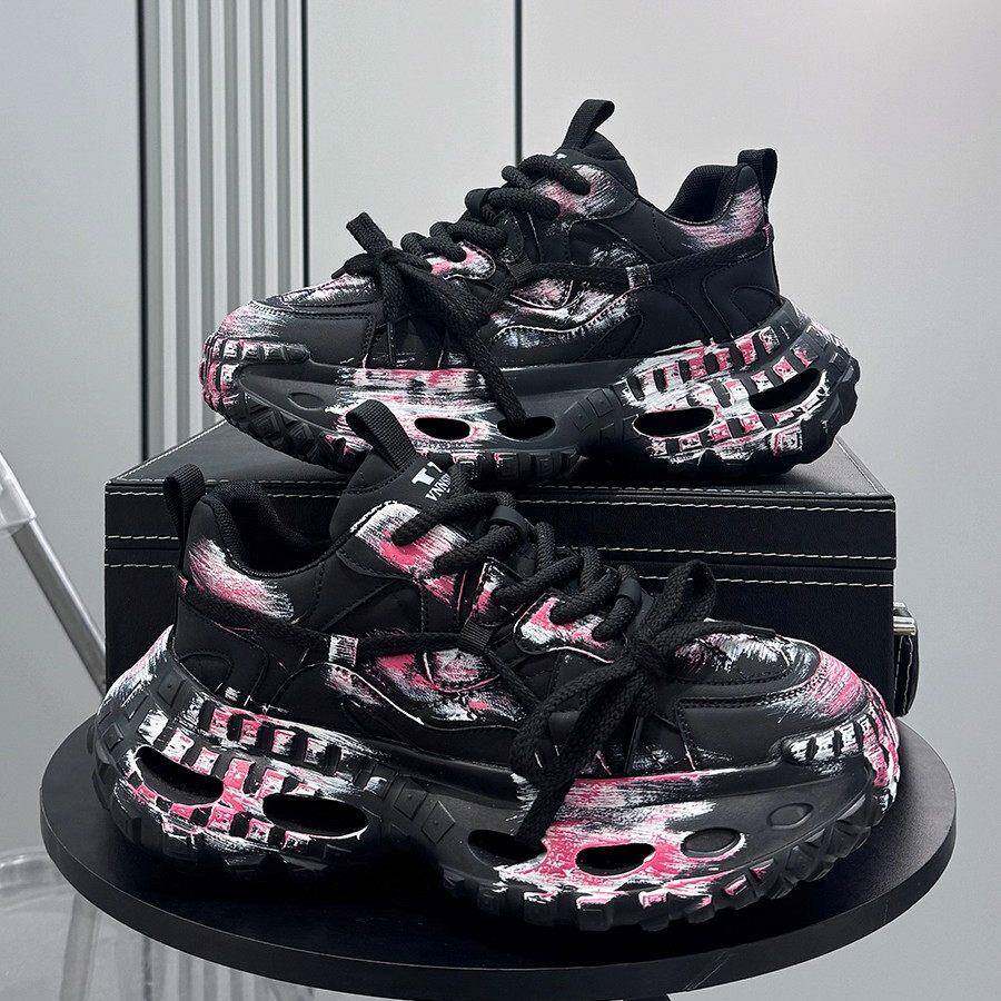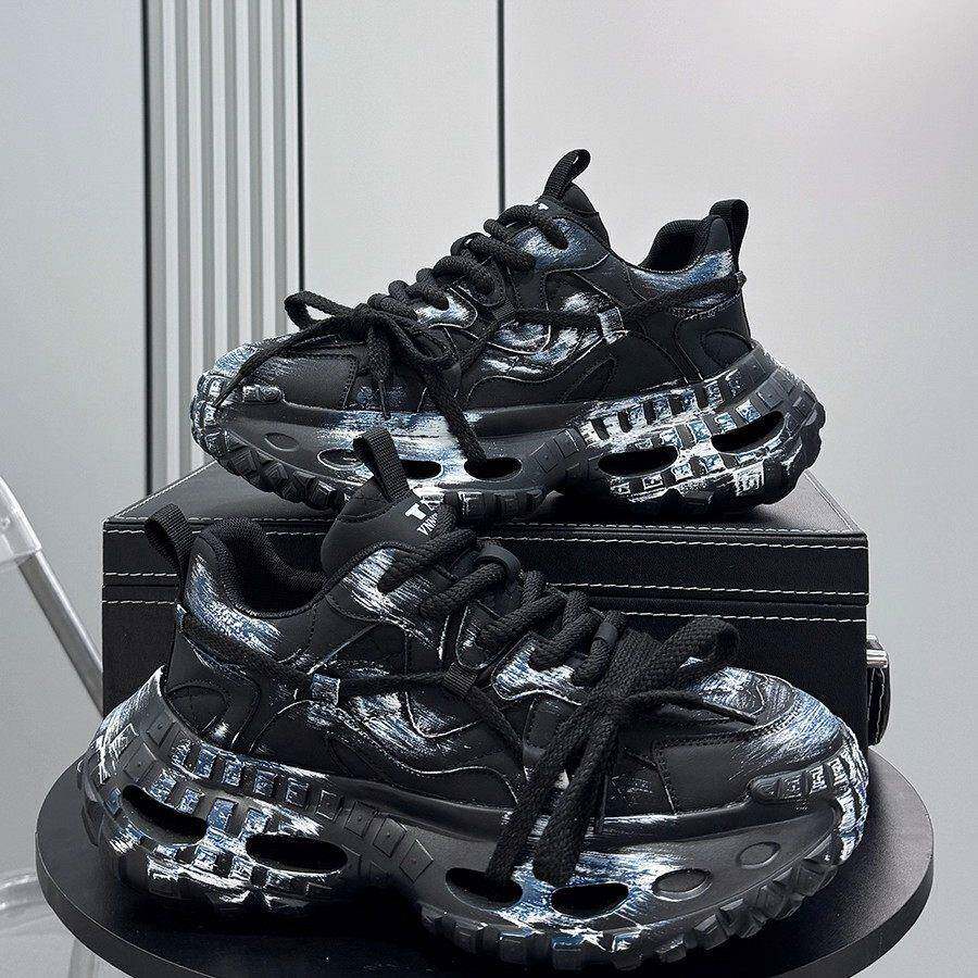 潮牌男鞋2025新款冬季加绒超火老爹鞋小众休闲鞋厚底内增高运动鞋