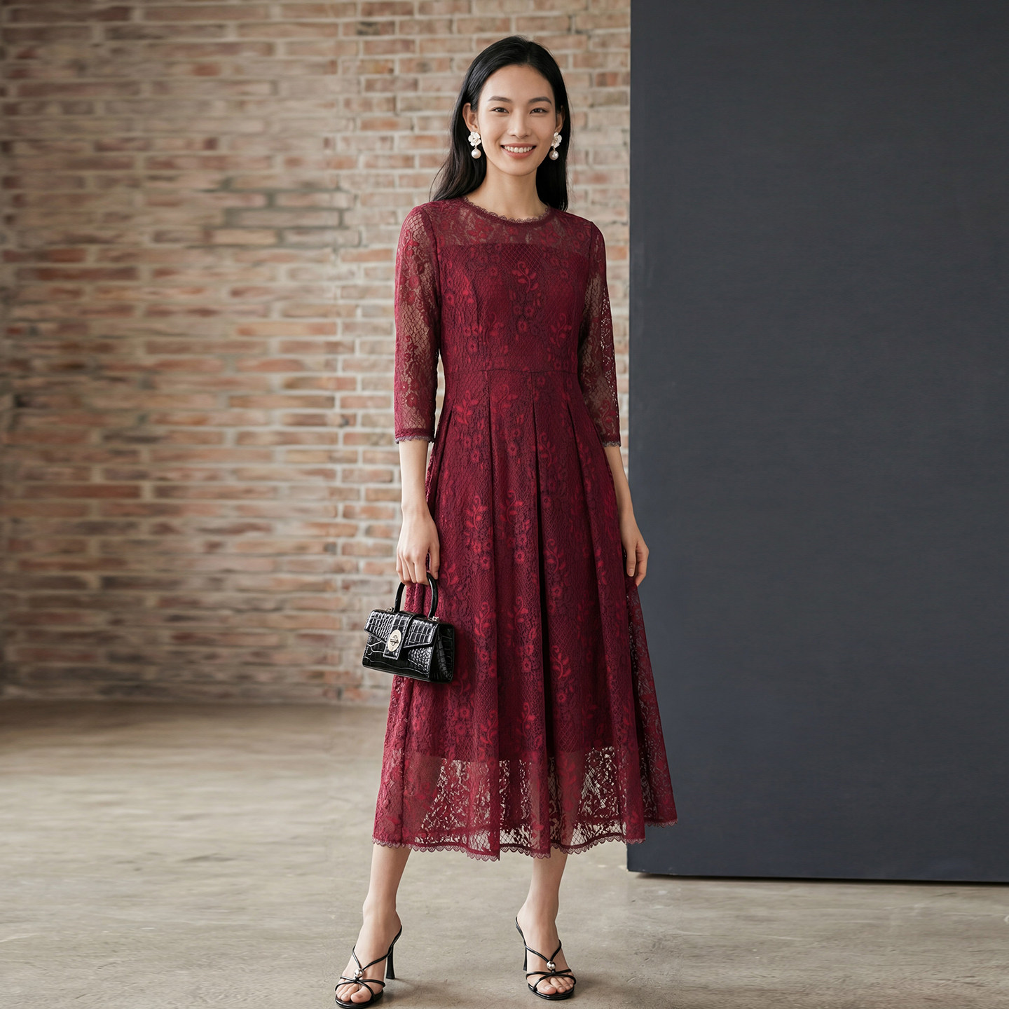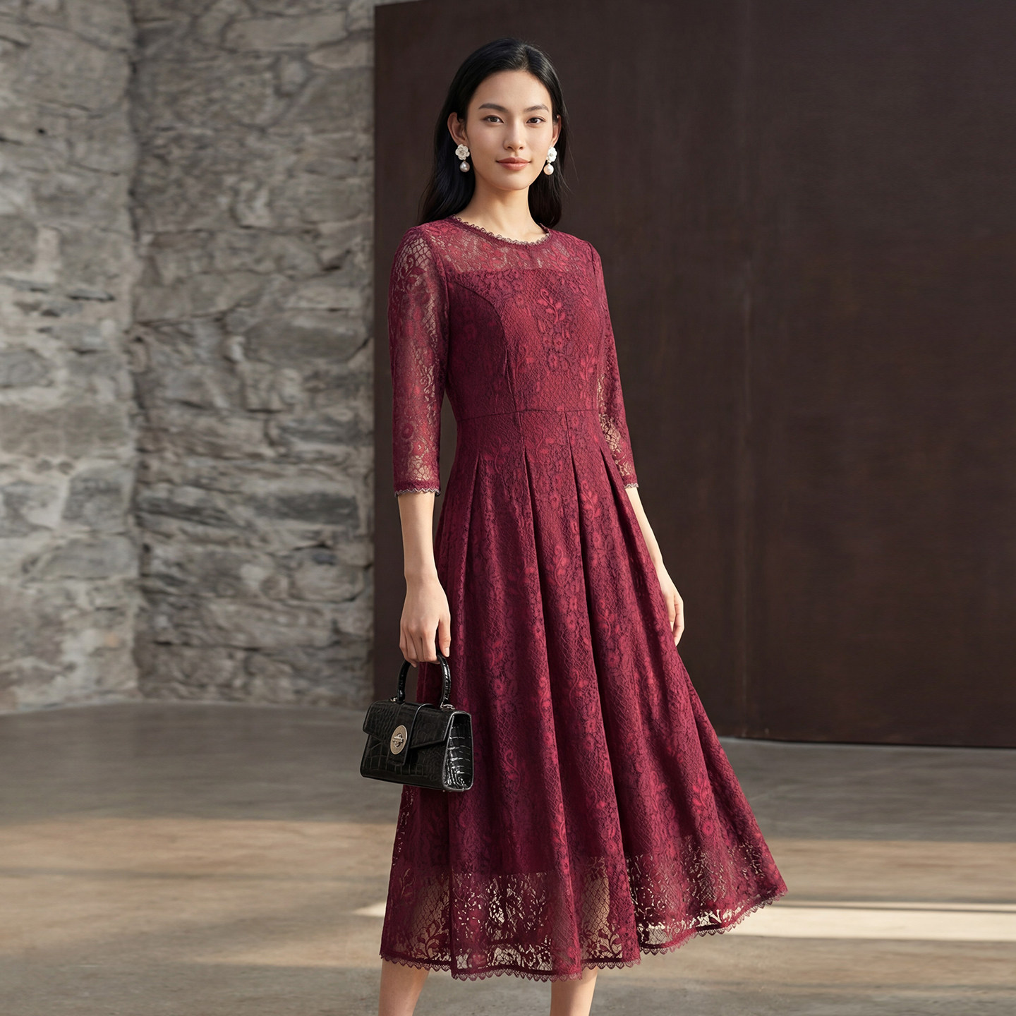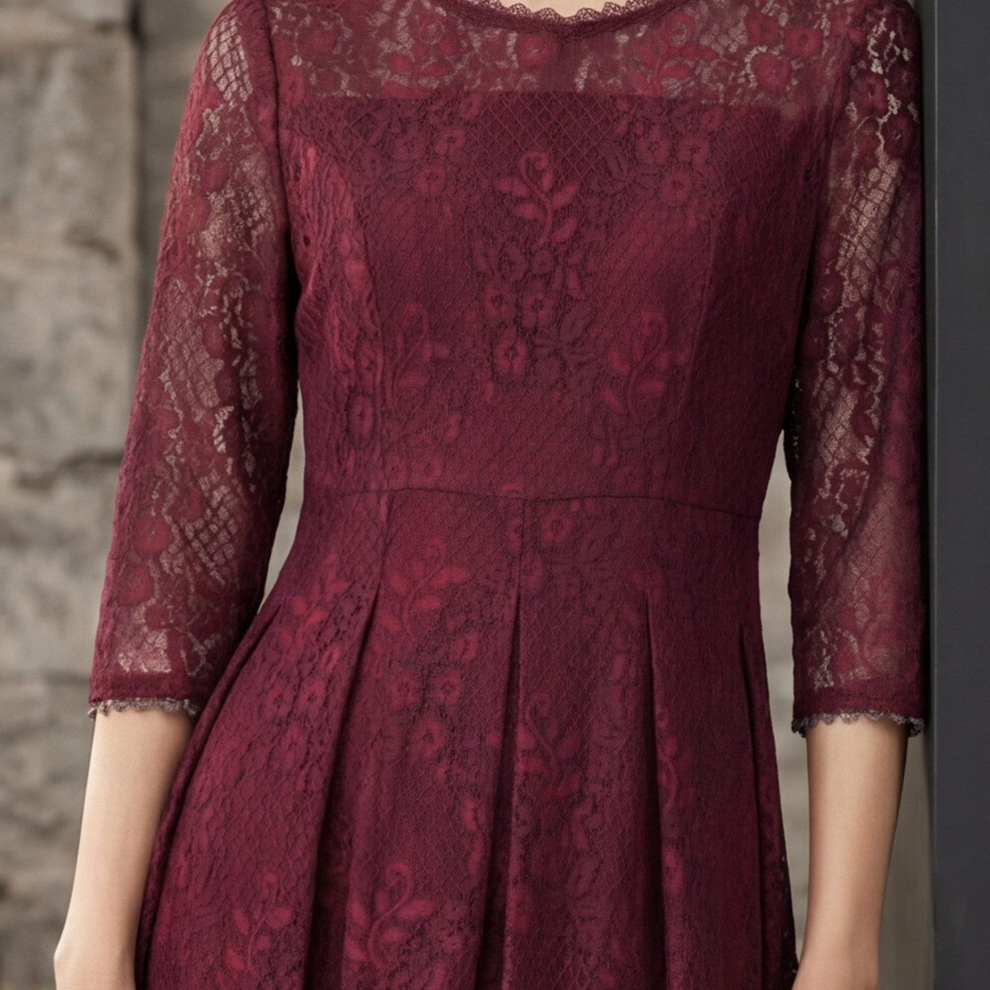 311线报网描述:重工蕾丝面料 收腰显瘦版型 法式气质风格