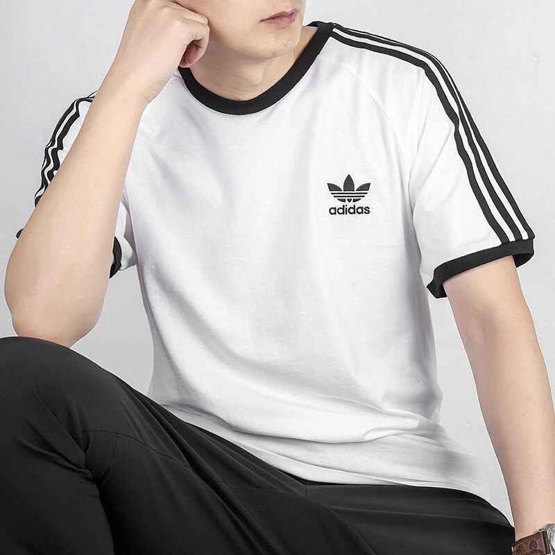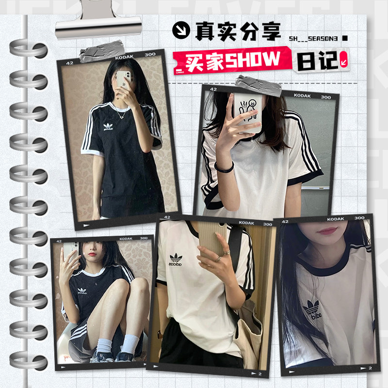 阿迪达斯三叶草纯棉短袖女2026春季新款时尚半袖三条纹宽松t恤男