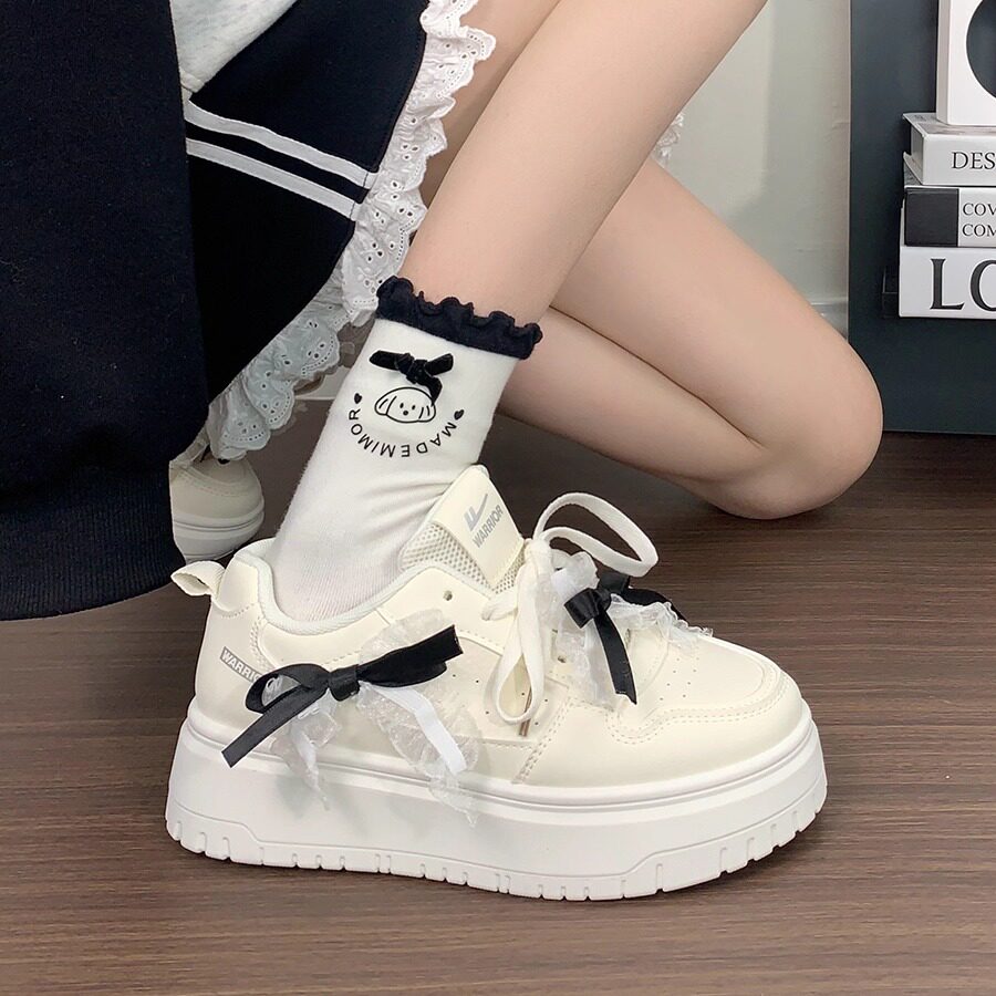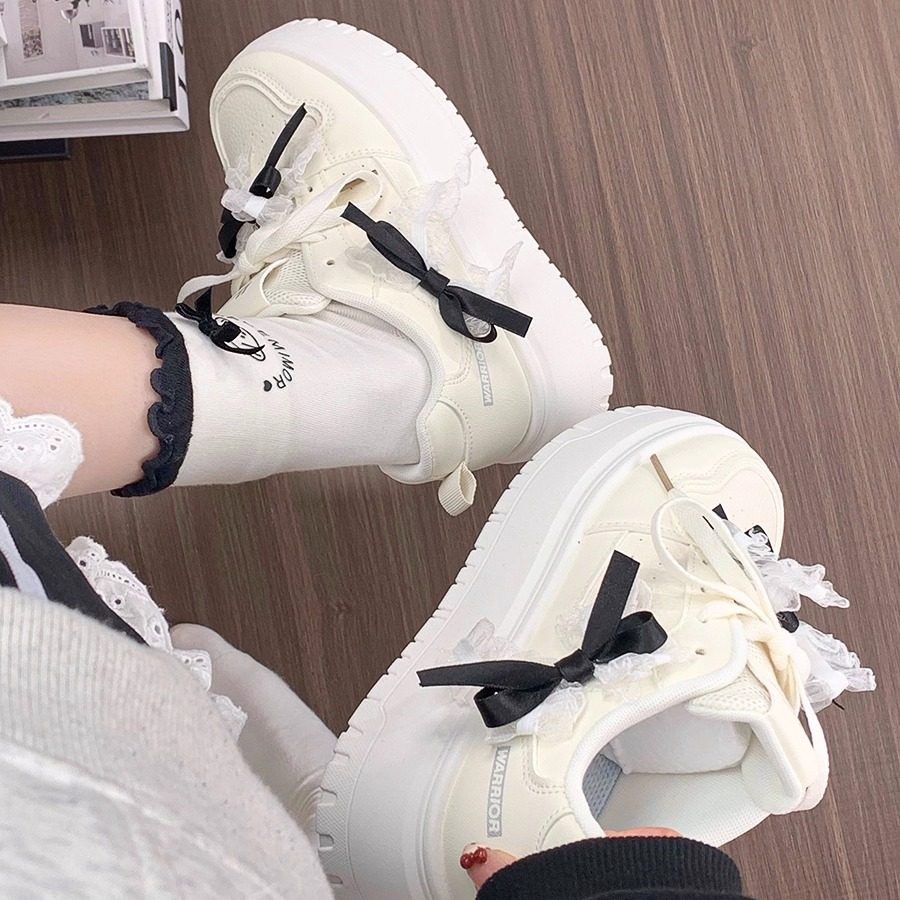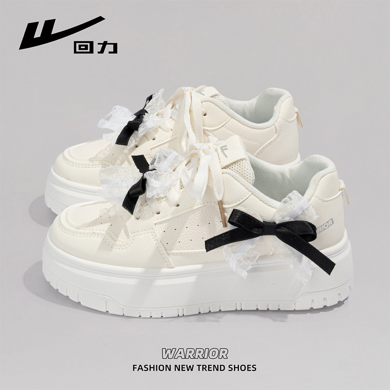回力蝴蝶结女鞋原创小众春季增高厚底板鞋女款爆款百搭学生小白鞋