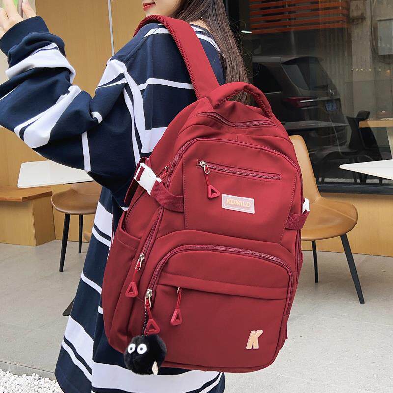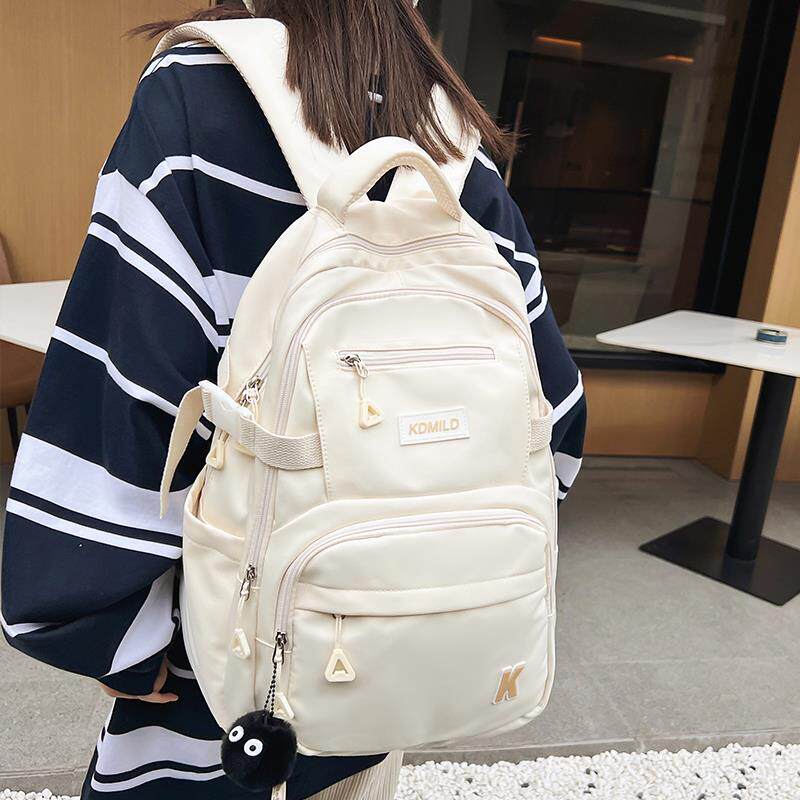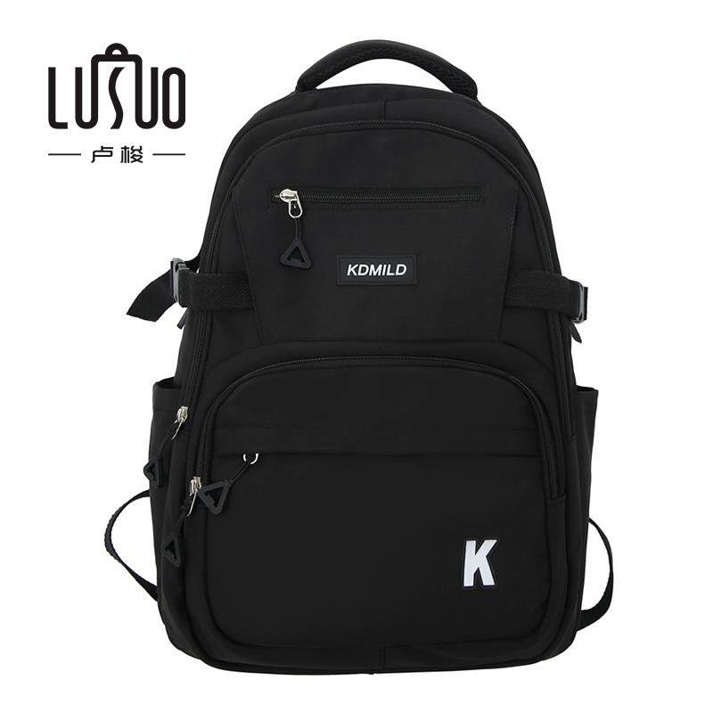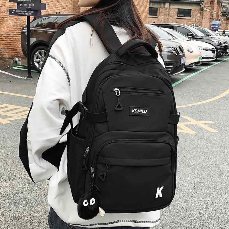 书包女中学生轻便简约大容量黑色双肩包初中高中生大学生多层背包