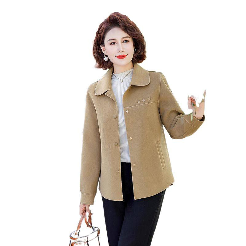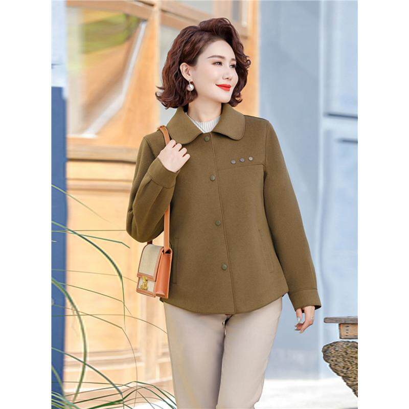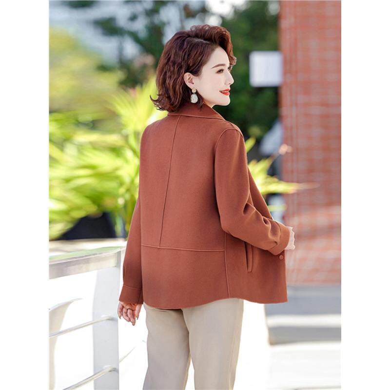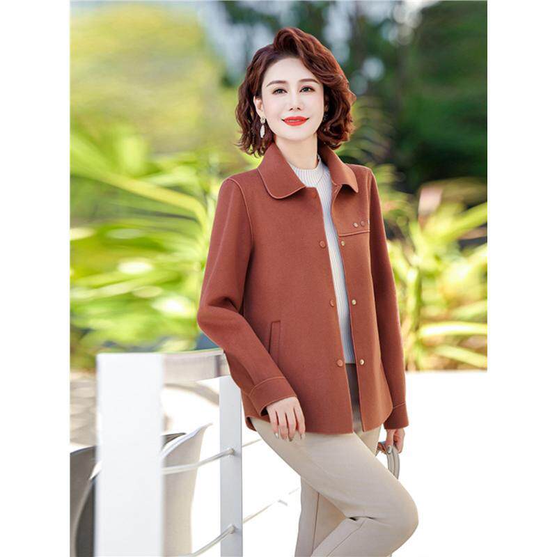 中年妈妈春秋装双面呢翻领外套短款中老年女装洋气高贵毛呢上衣