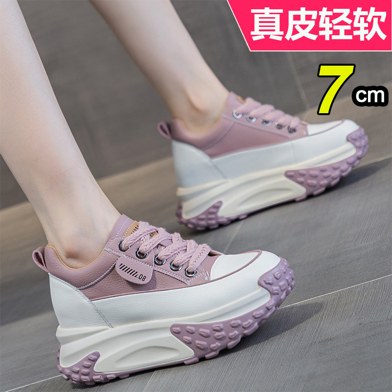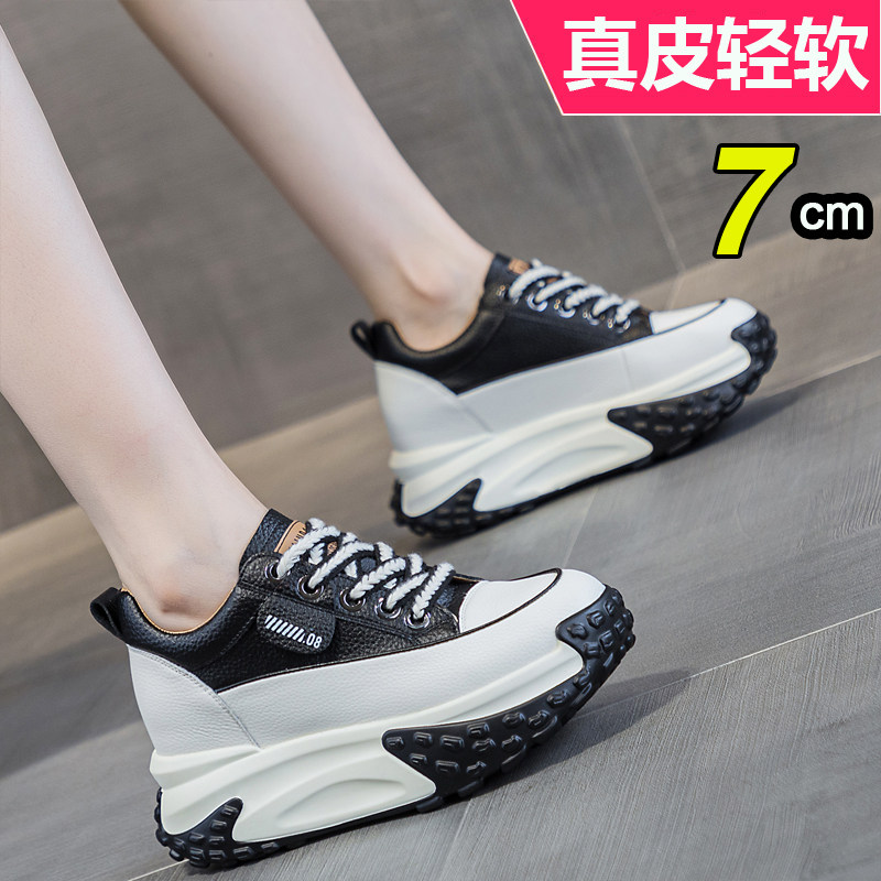 内增高8cm老爹运动鞋2026新款春百搭真皮复古小个子厚底单鞋软底