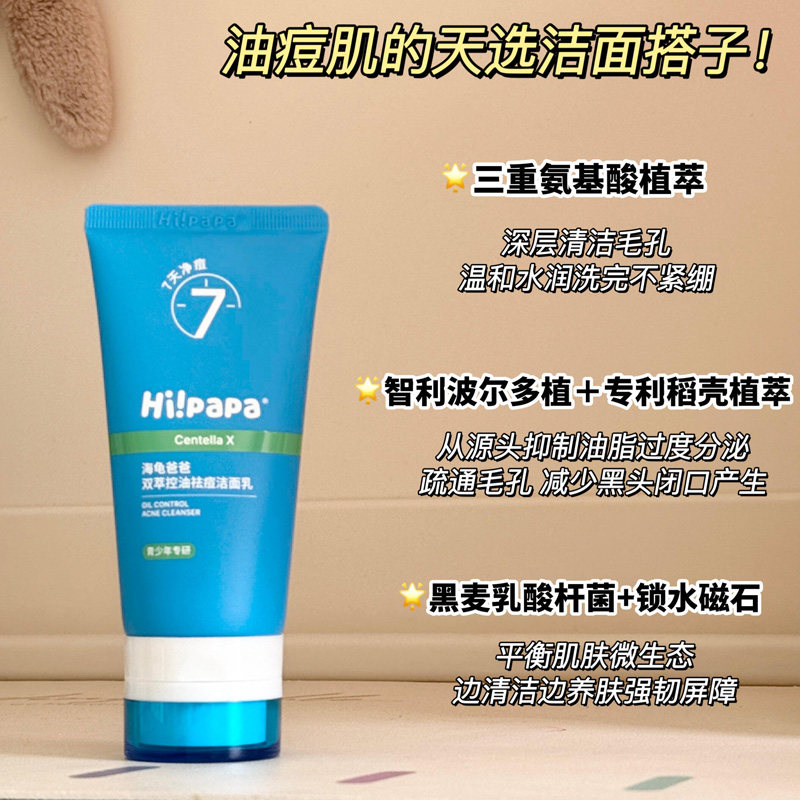 海龟爸爸青少年洗面奶男孩青春期女学生控油祛痘洁面乳氨基酸清洁