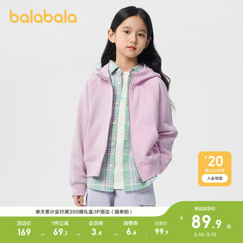 巴拉巴拉童装儿童外套男童春装女童百搭卫衣开衫连帽时尚绣花精致