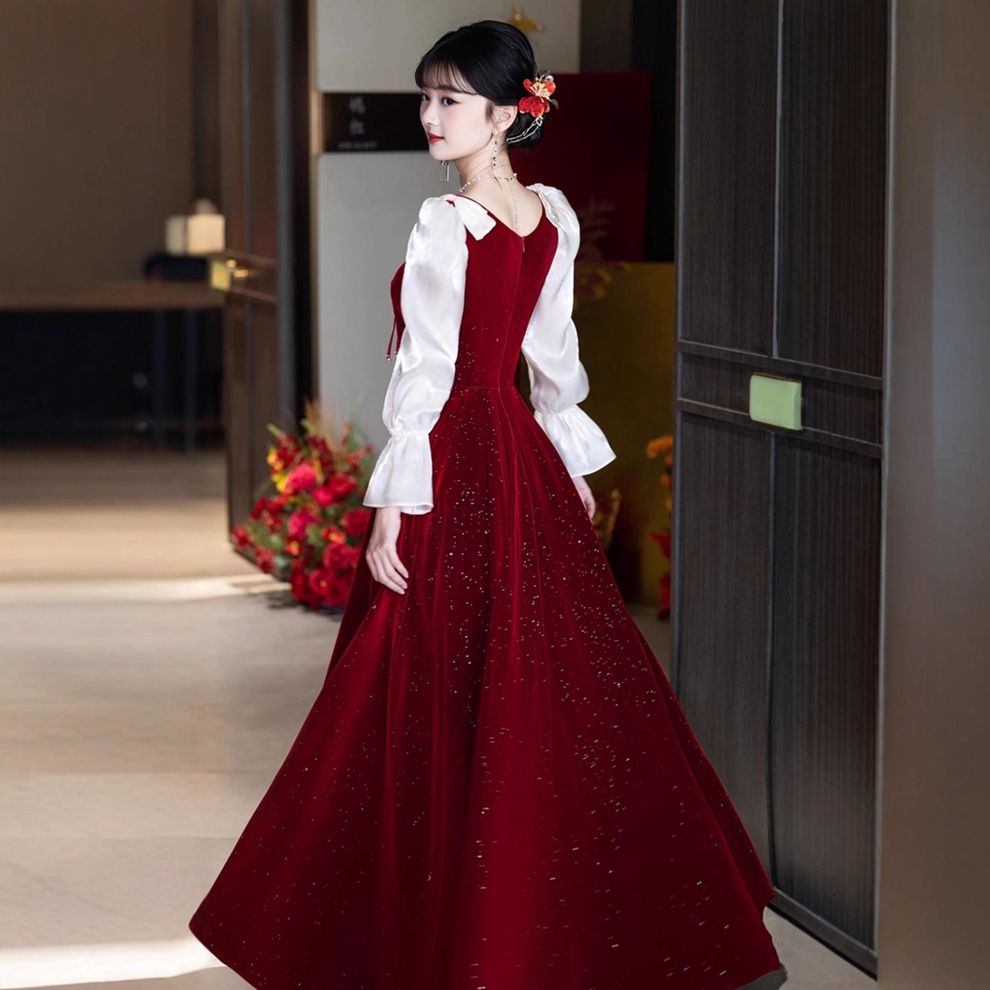 初中生2025新款秋冬长袖轻奢平时可穿礼服连衣裙女大童宴会主持人