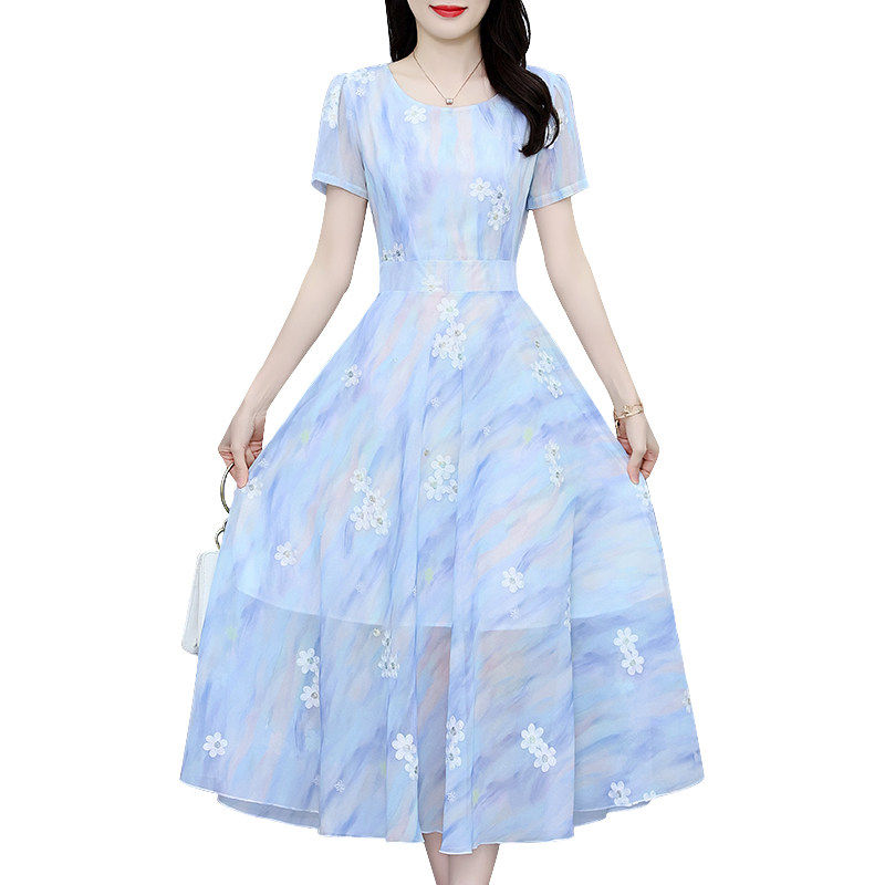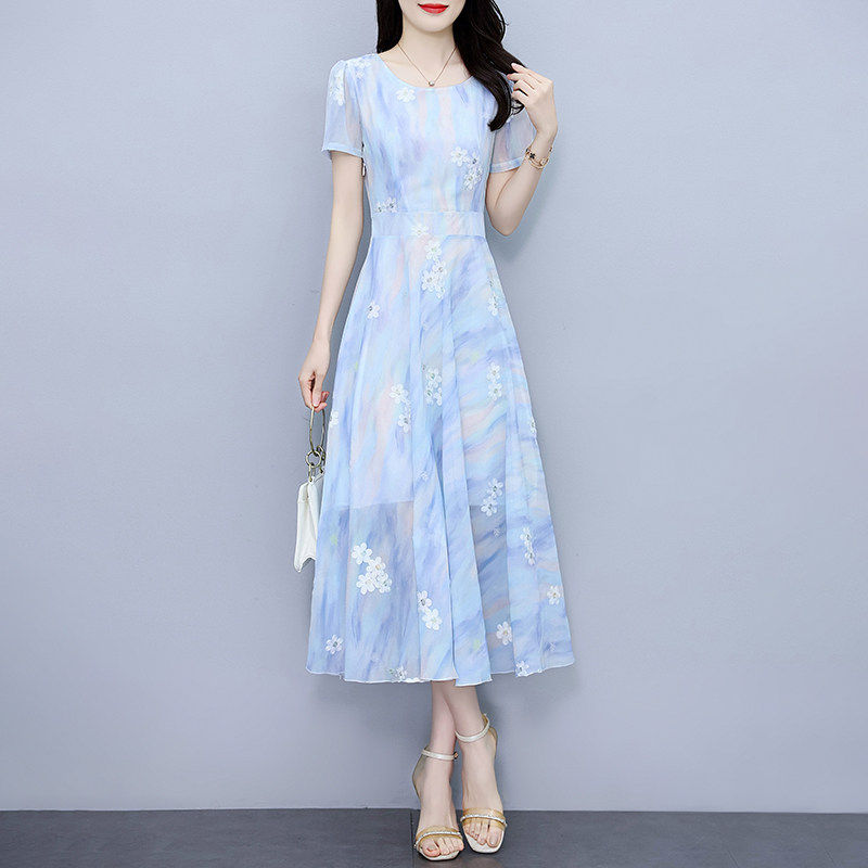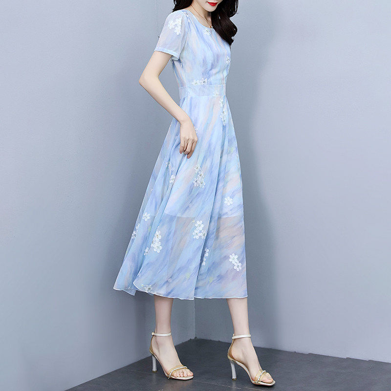 真丝桑蚕丝洋装女2026新款今年流行爆款气质显瘦刺绣香云纱裙子