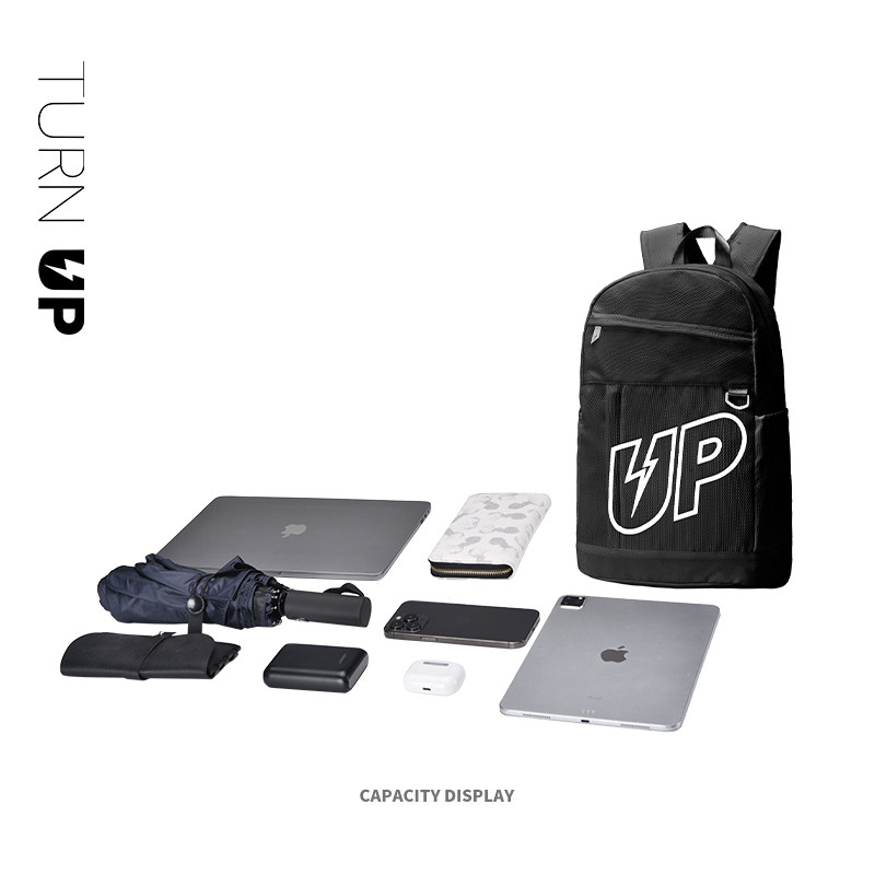 TURNUP大容量双肩包男士旅行包大学生书包女生高中生学生背包黑色