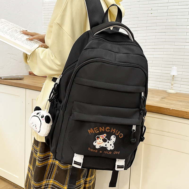 黑色书包初中女生高颜值高中生女2025新款大容量结实耐用双肩背包