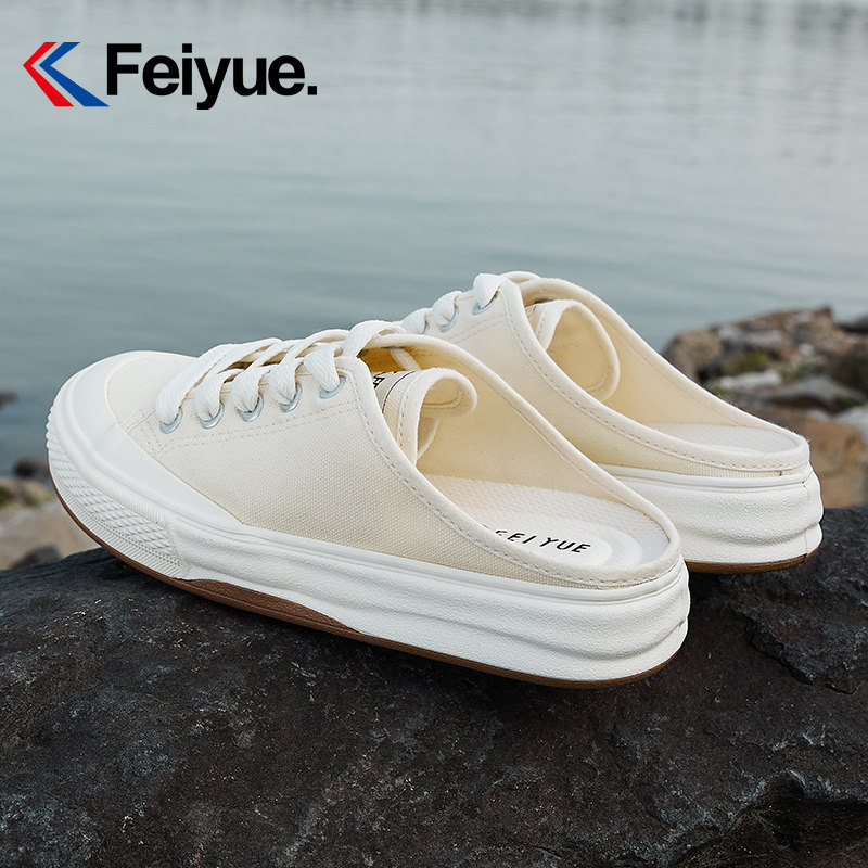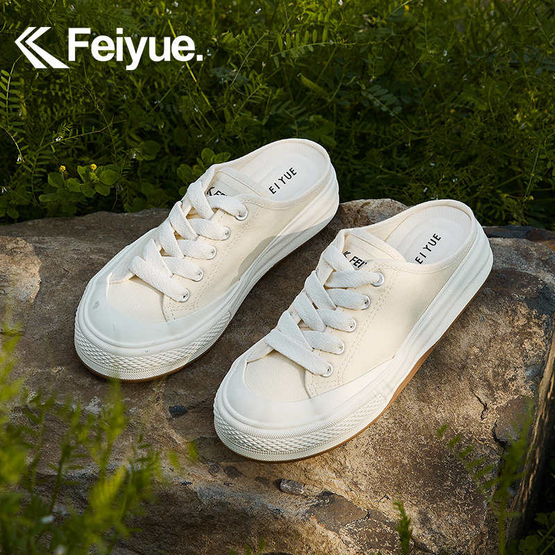 飞跃厚底半拖女鞋2026春夏新款小白鞋懒人一脚蹬舒适软底拖鞋941