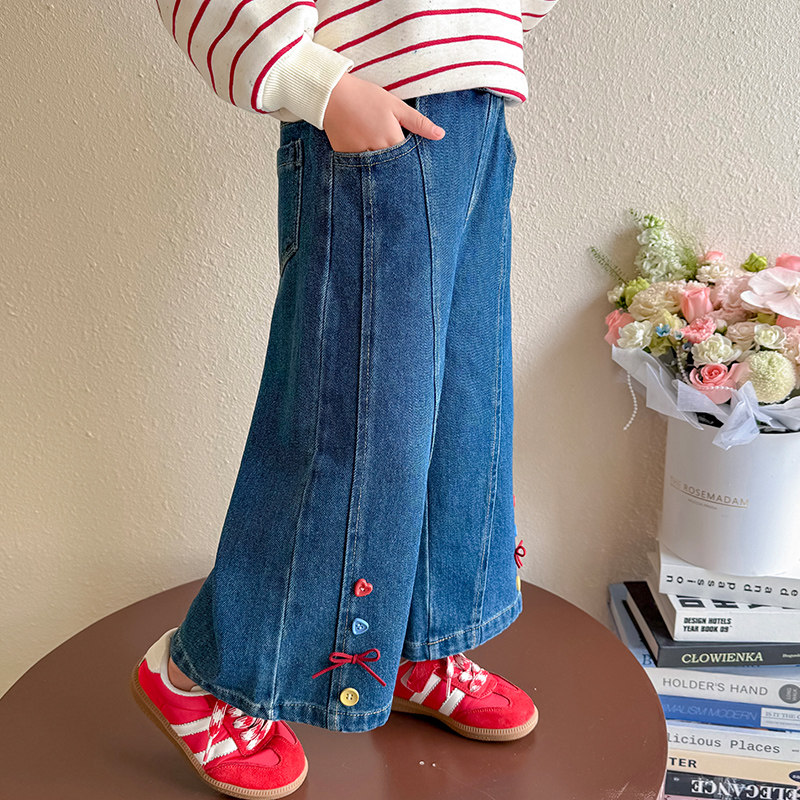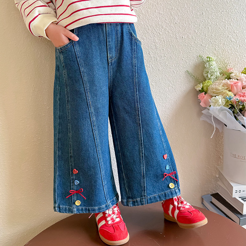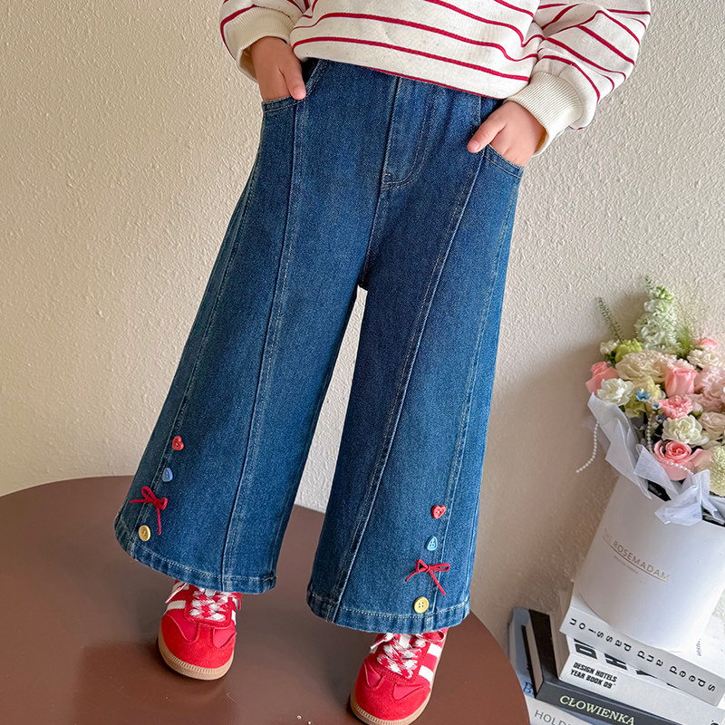 女童裤子春季2026新款洋气儿童春装阔腿裤女宝宝春秋超好看牛仔裤