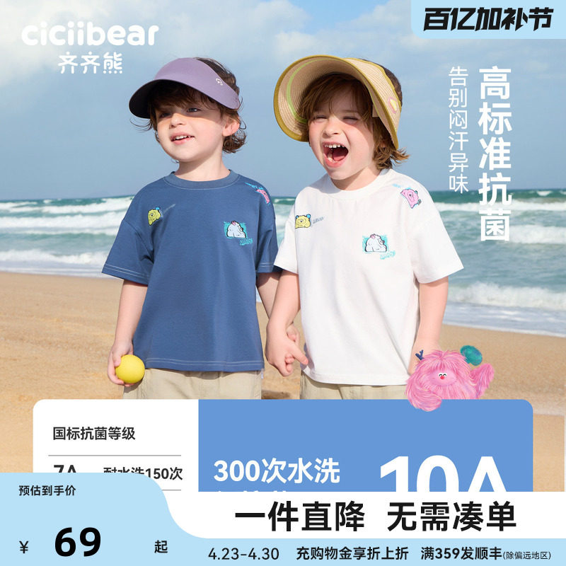 311线报网描述:齐齐熊宝宝男童短袖T恤 抗菌凉感