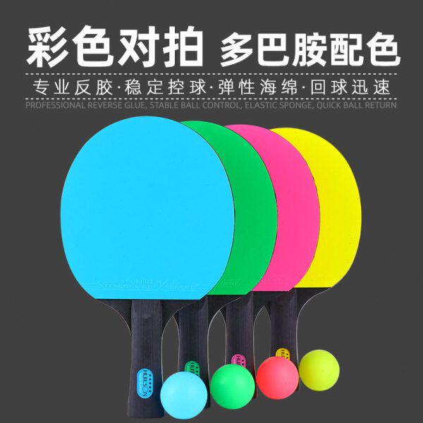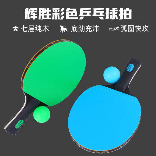 辉胜彩色乒乓球拍对拍长柄横拍双面反胶蓝色套胶比赛训练球拍两只