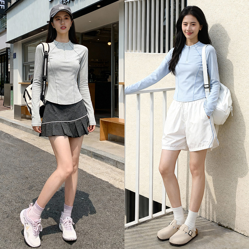 NOB真维斯青少年速干长袖上衣女款t恤春季透气运动健身短款瑜伽服