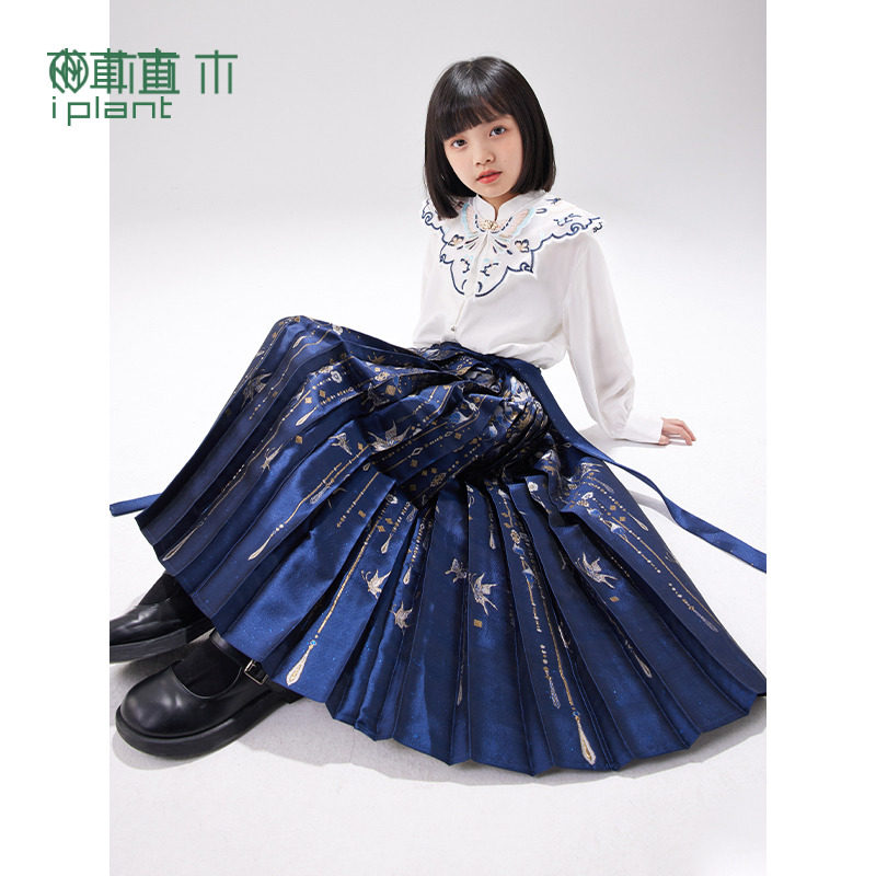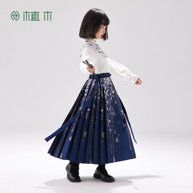 植木童装新中式蝴蝶马面裙女童套装春冬款2025新款中大童裙子年服