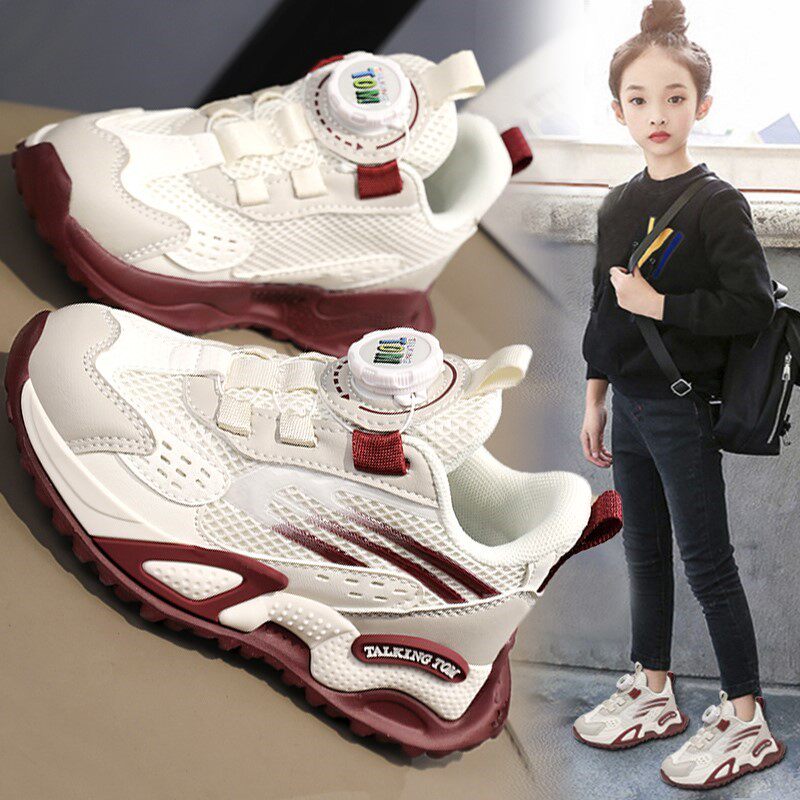 帮豋官方正品女童鞋红色新年鞋2025新款春季儿童网面运动跑步鞋