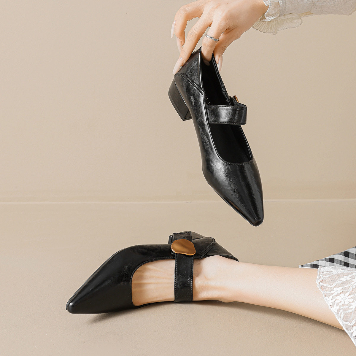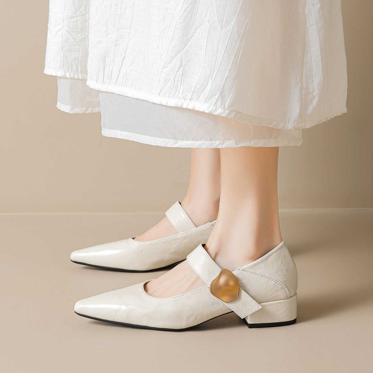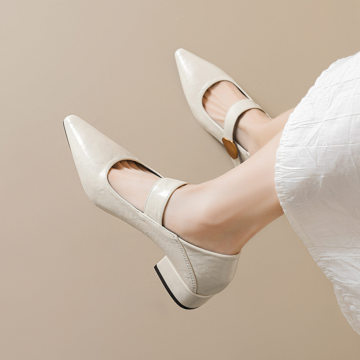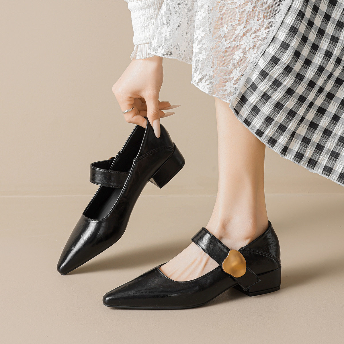 尖头单鞋女款配裙子的鞋子法式玛丽珍鞋女2026春夏新款粗跟高跟鞋